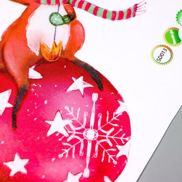 Наклейка пластик интерьерная цветная "Лисёнок на новогоднем шаре" 30х45 см интересное: