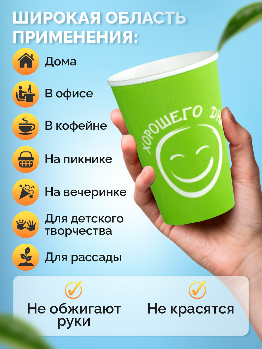 СохранитьСтаканы одноразовые бумажные 250 мл, для кофе и чая, 50 шт, салатовый интересное: