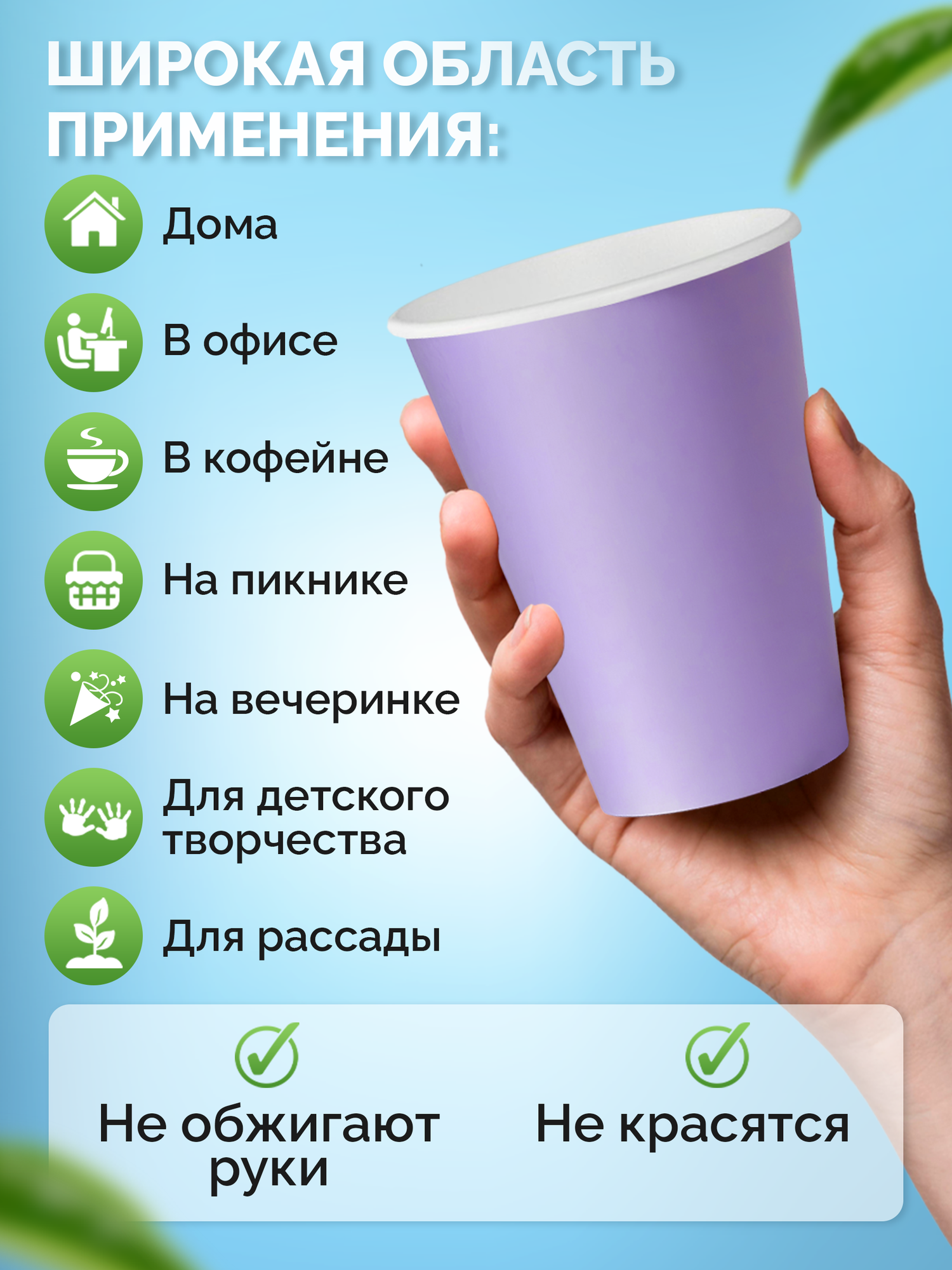 СохранитьСтаканы одноразовые бумажные 250 мл, для кофе и чая, 50 шт, лавандовый интересное: