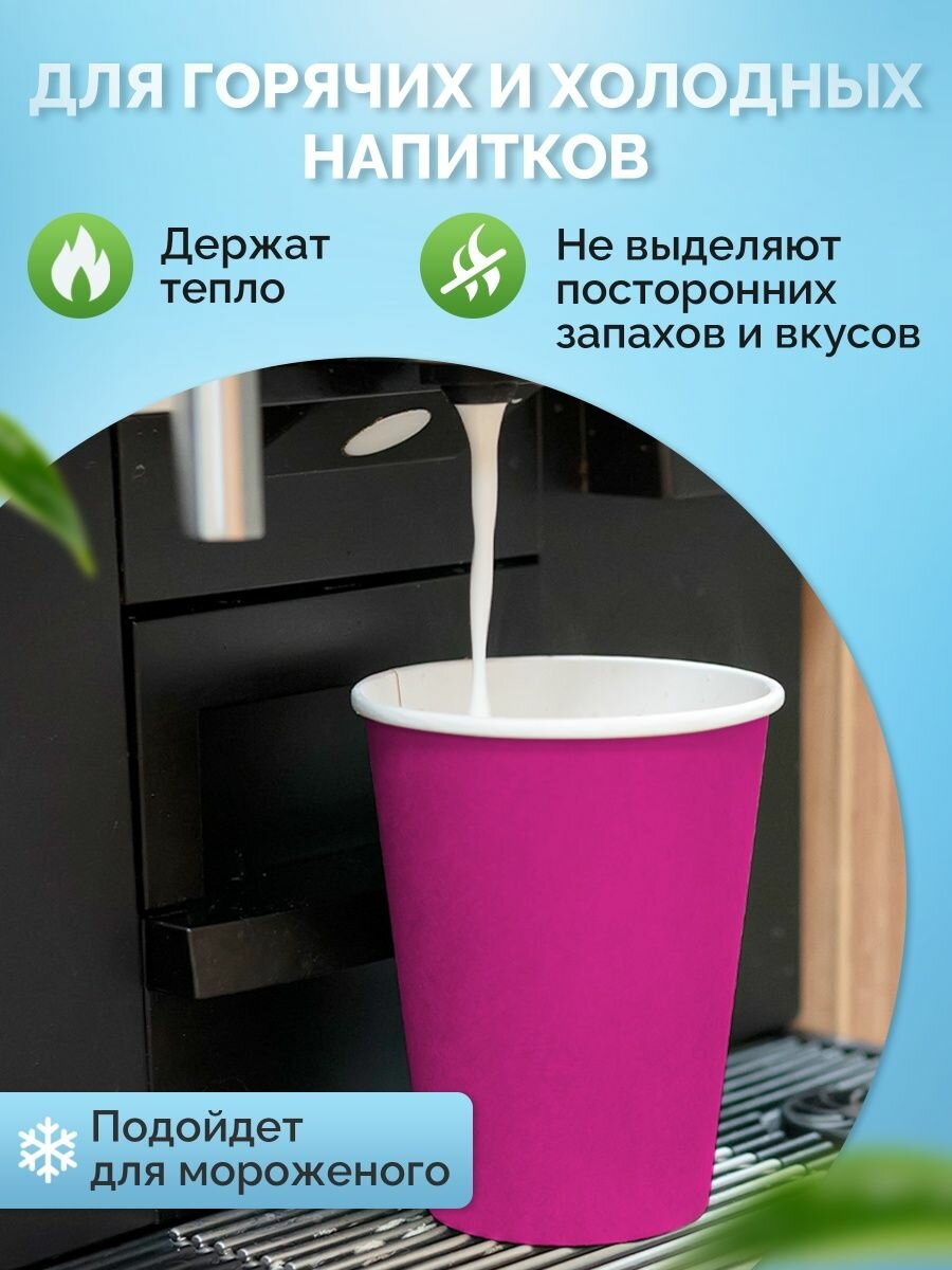 Купить Стаканы одноразовые бумажные 250 мл, для кофе и чая, 50 шт, фуксия