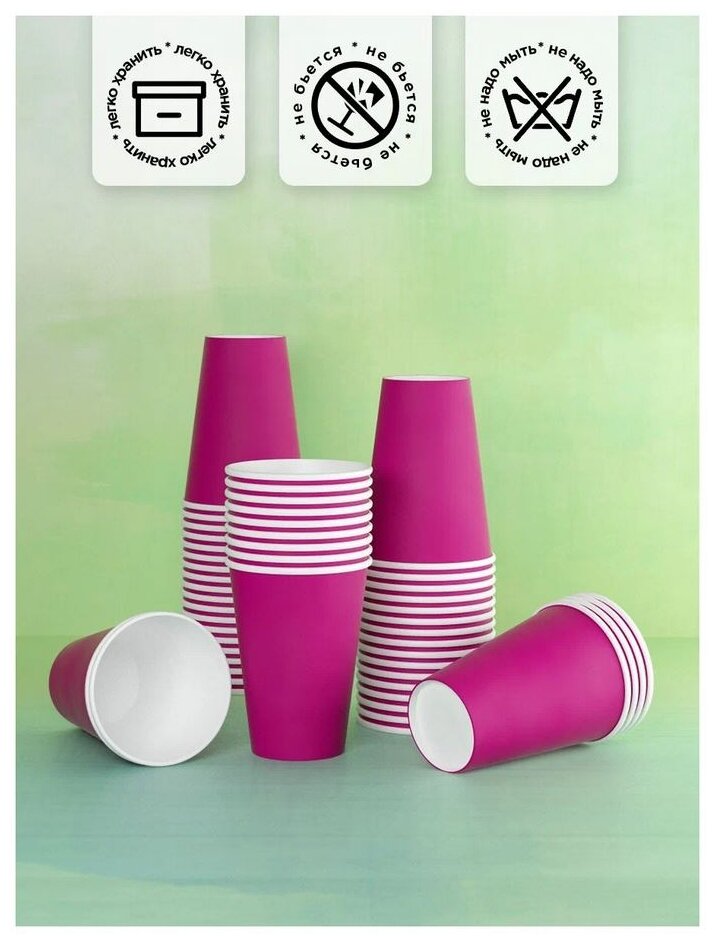 СохранитьСтаканы одноразовые бумажные 250 мл, для кофе и чая, 50 шт, фуксия интересное: