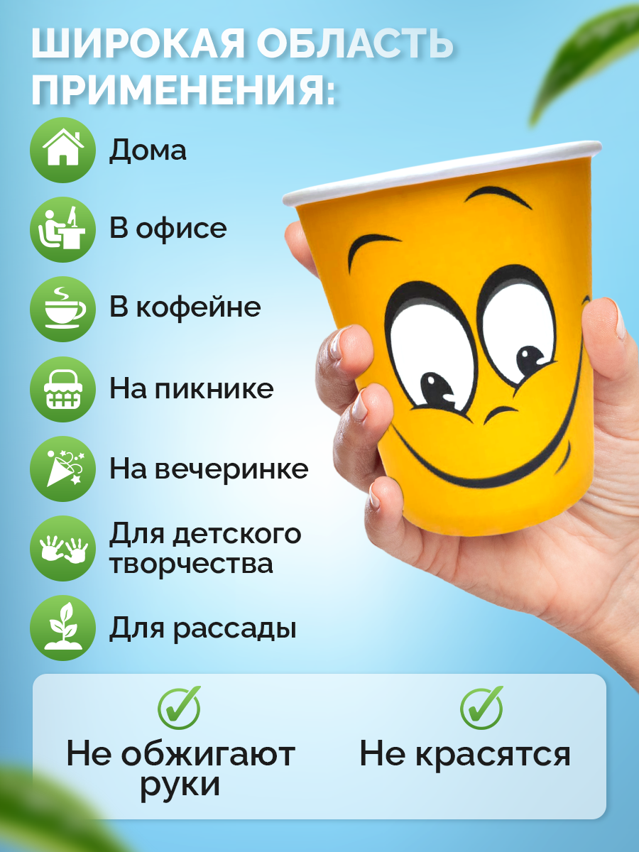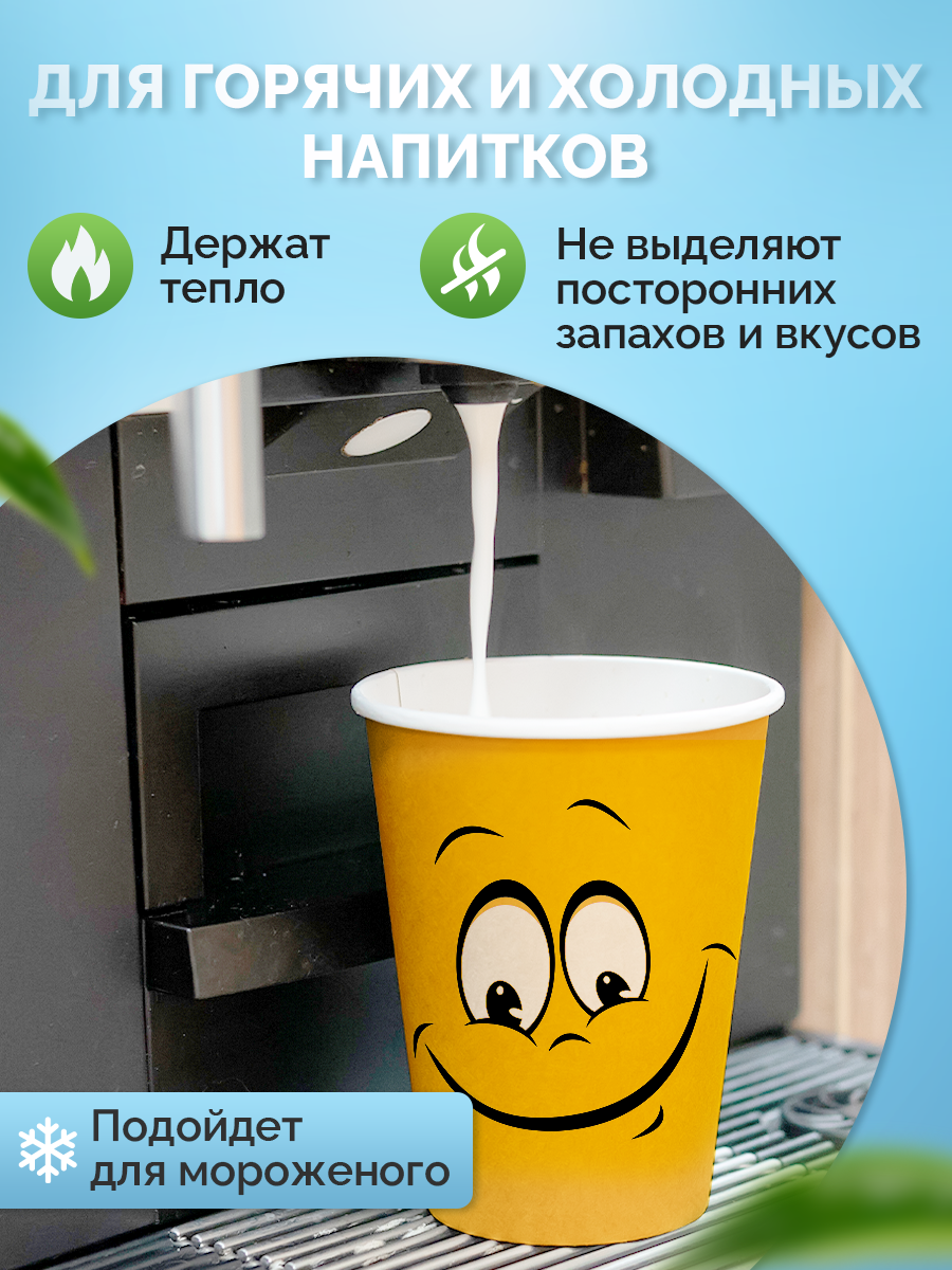 СохранитьСтаканы одноразовые бумажные 250 мл, для кофе и чая, 50 шт, Смайл интересное: