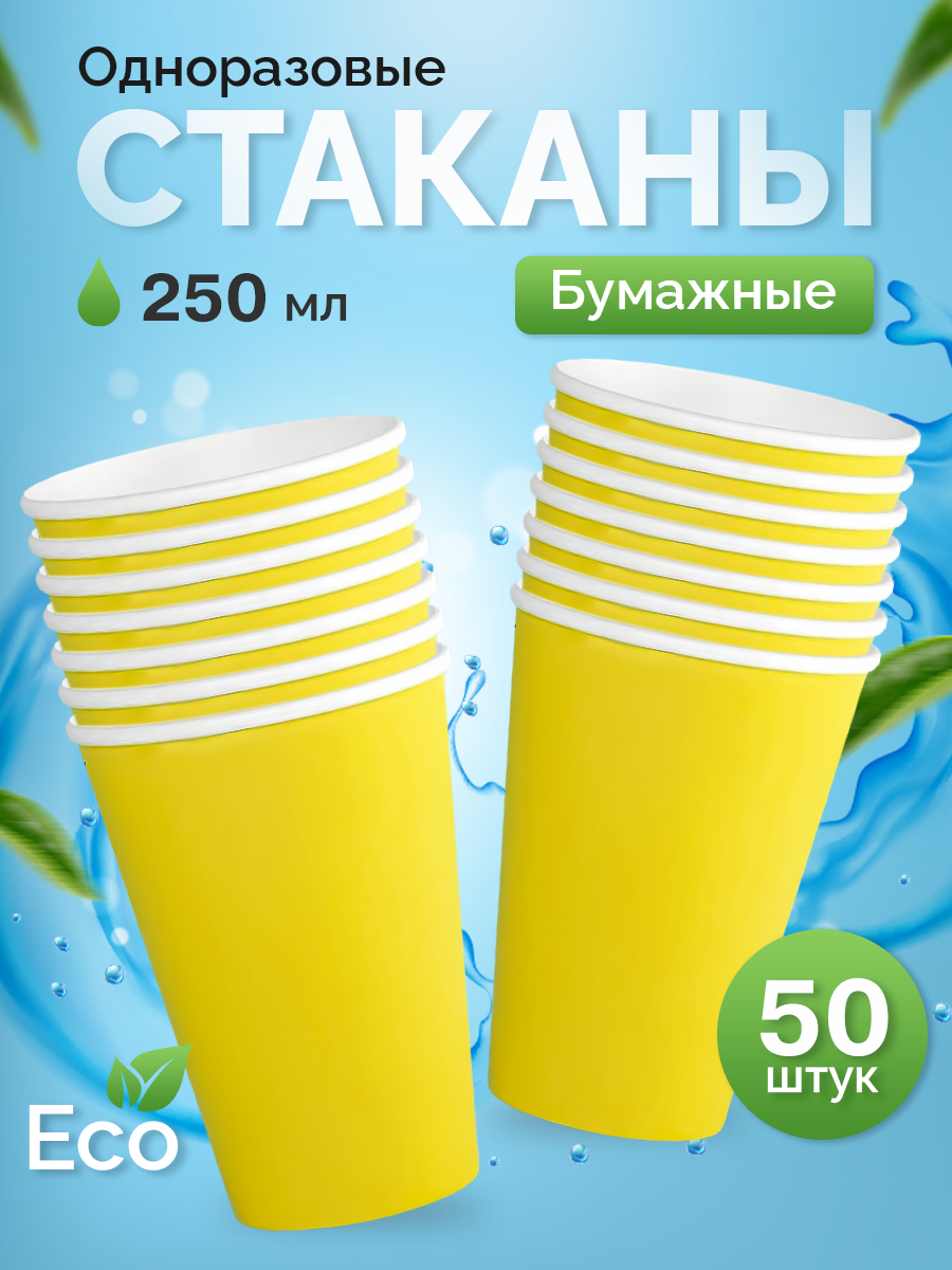 Купить Стаканы одноразовые бумажные 250 мл, для кофе и чая, 50 шт, желтый