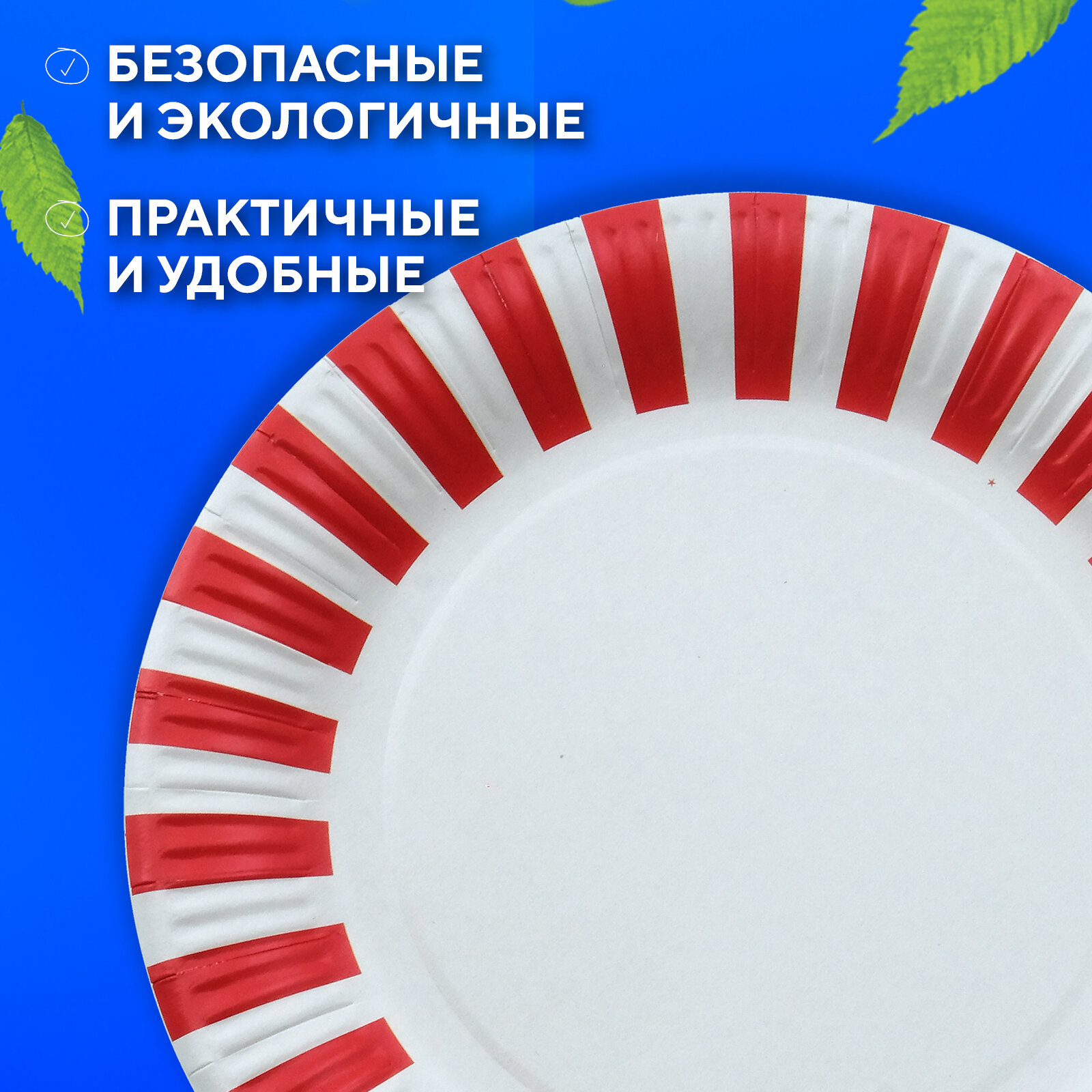 Тарелки одноразовые картонные белые с красной полоской 23 см, упаковка 50 шт интересное:
