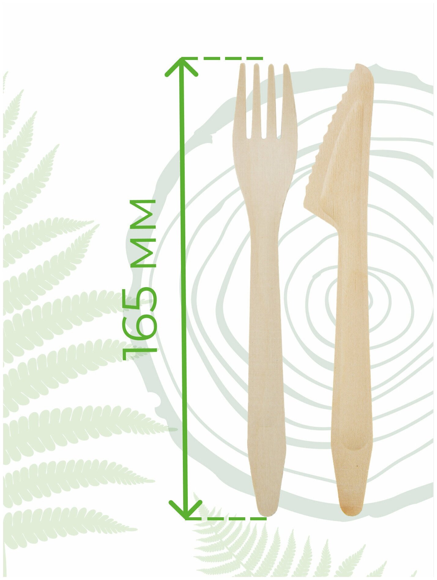 Набор одноразовых деревянных приборов, комплект нож+вилка на праздник или дачу, размер 165мм 20шт интересное: