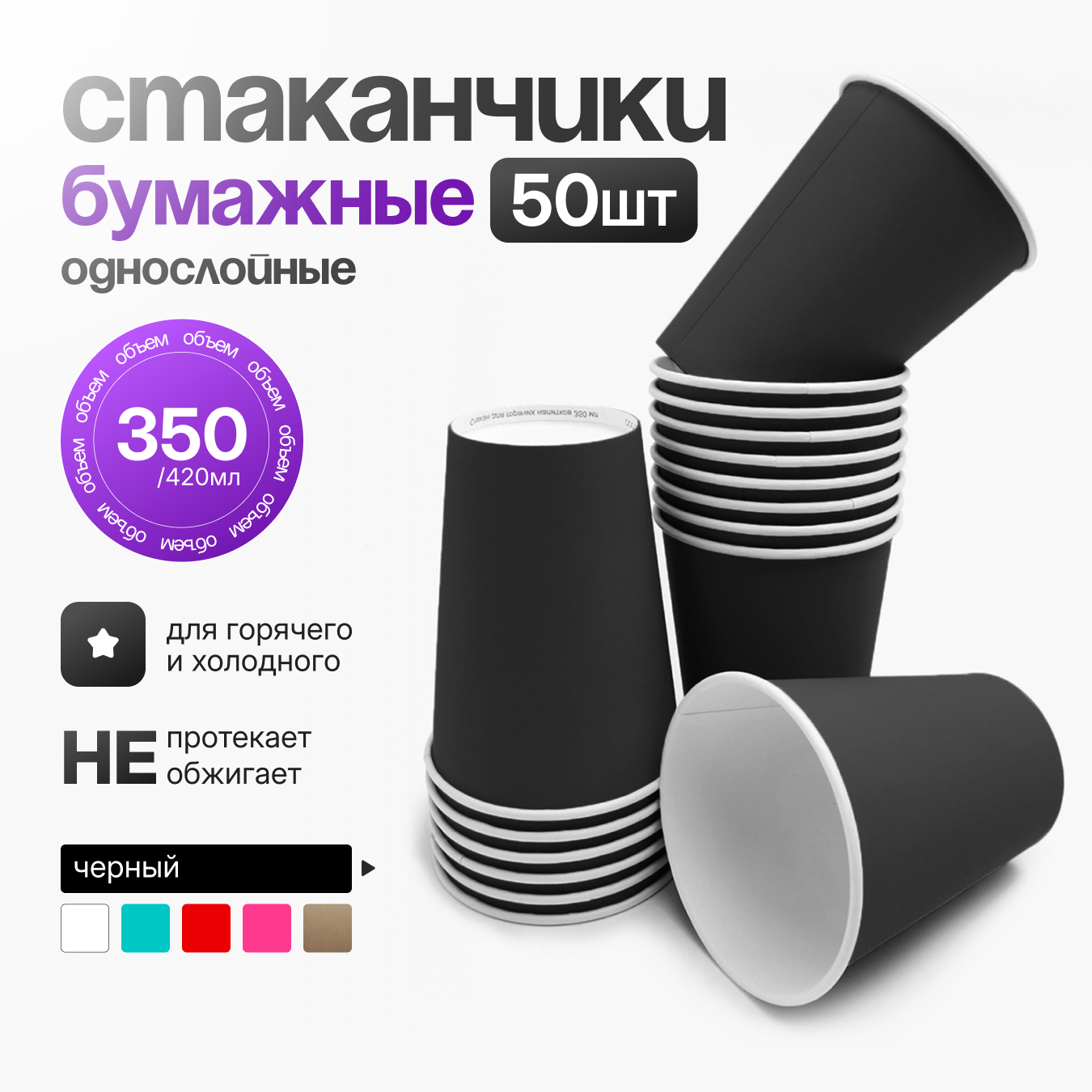 Стакан однослойный бумажный 350 мл "Черный", (50шт) интересное: