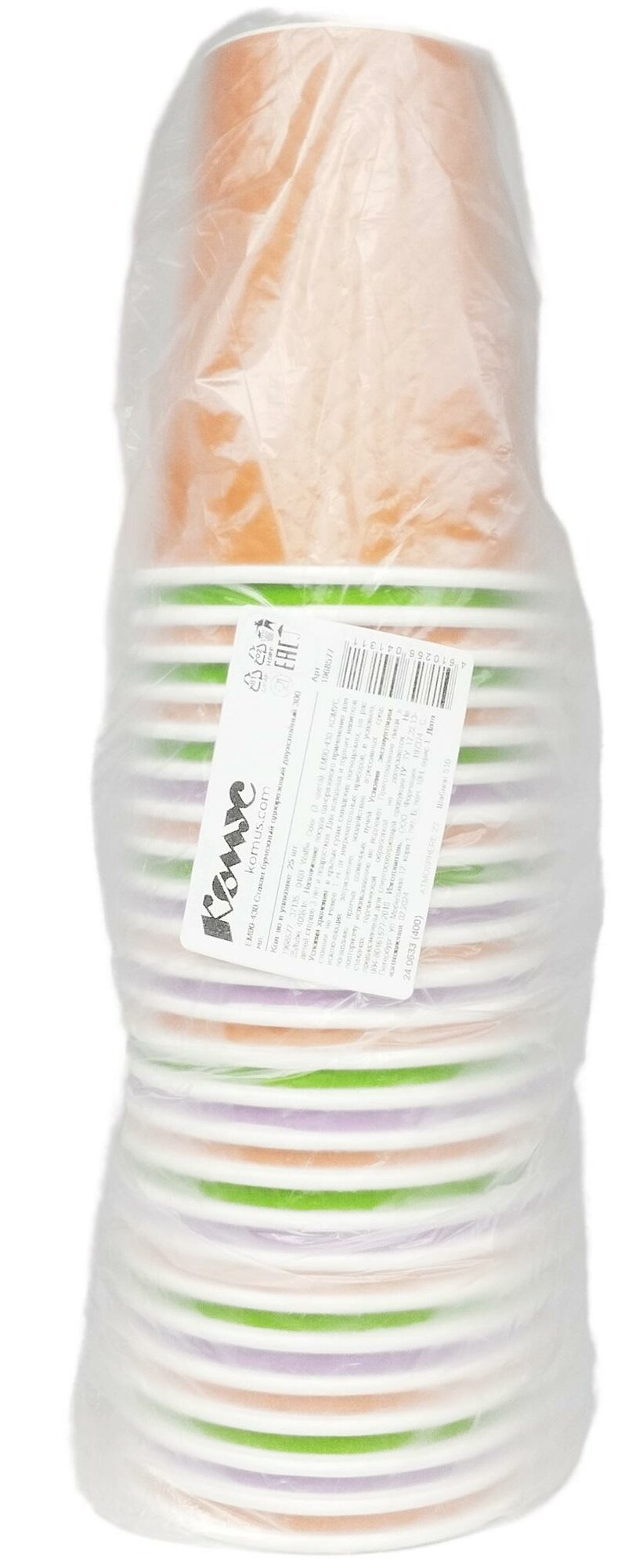 Стаканы одноразовые бумажные Комус, для горячих напитков, 300 мл, 25 штук, цветные