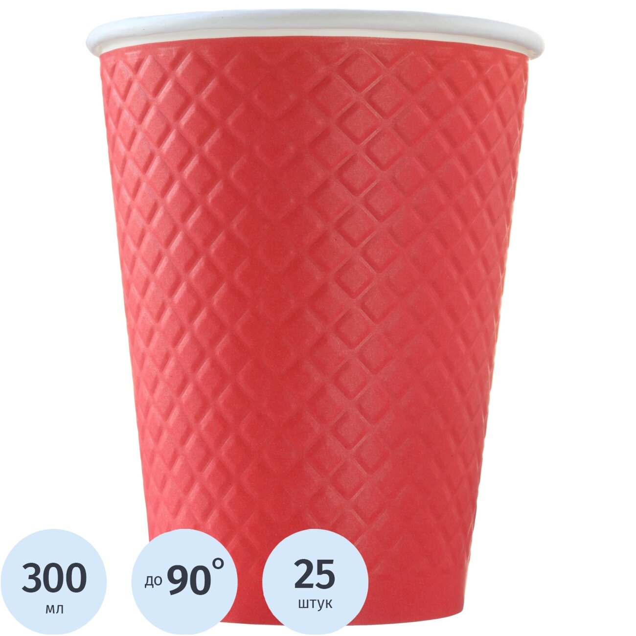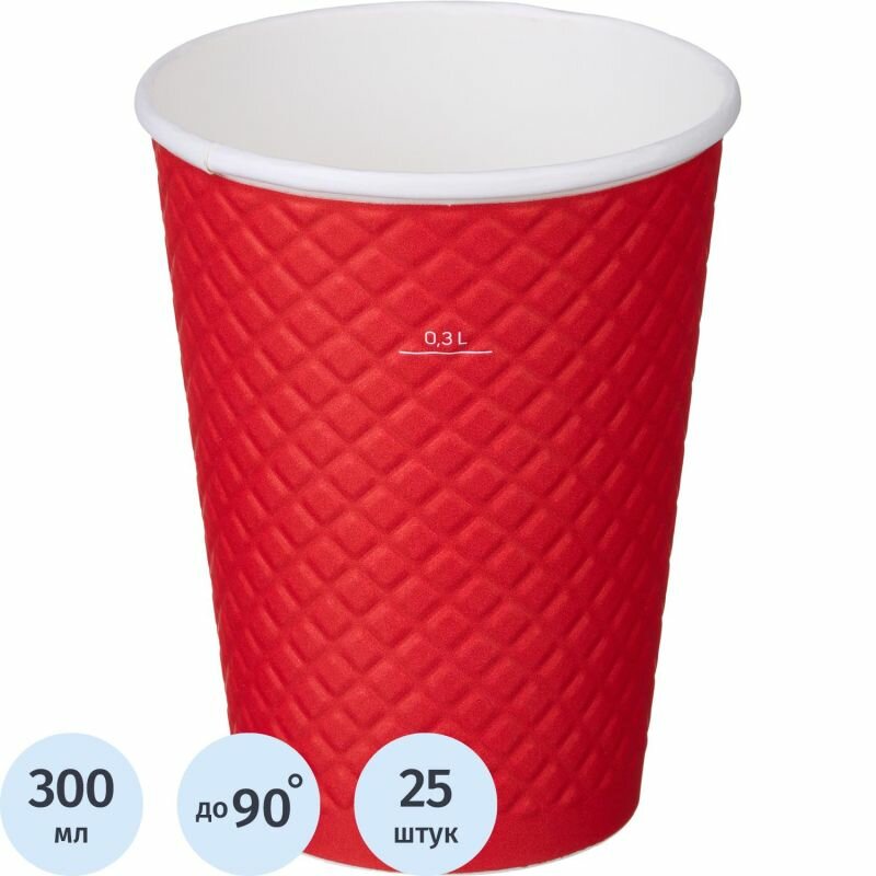 Купить Стакан одноразовый бум двухслойный d-90мм 300мл Waffle Red (25шт/уп) Комус 1968576 EM90-430