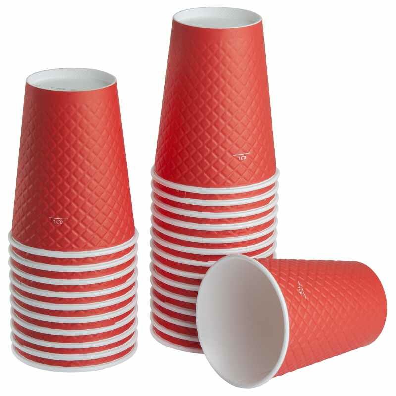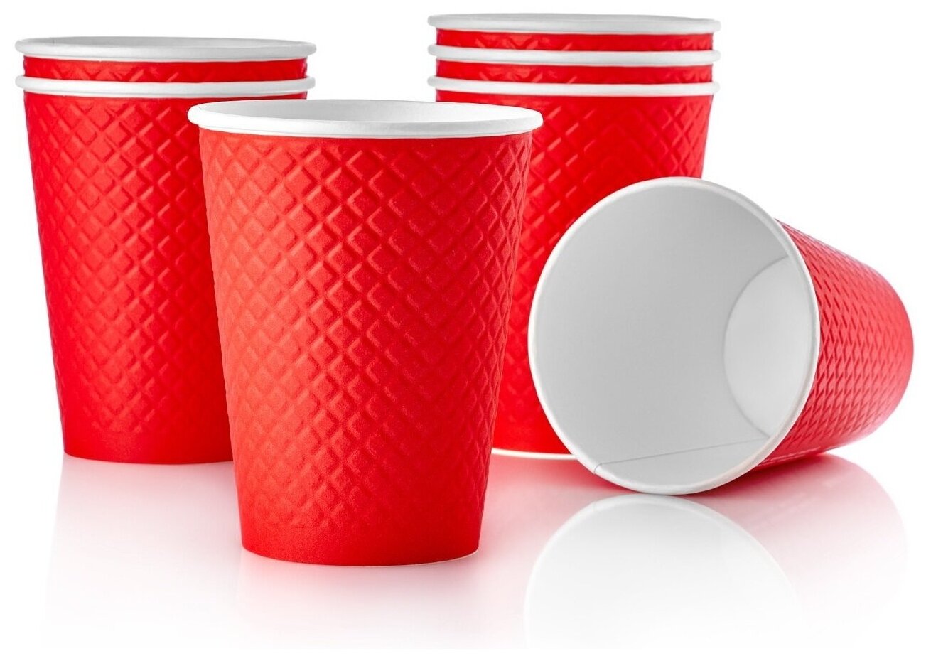 Одноразовые бумажные двухслойные стаканы Formacia, объем 300 мл, в наборе 25 шт. цвет красный, стаканчики для кофе с вафельной тектурой