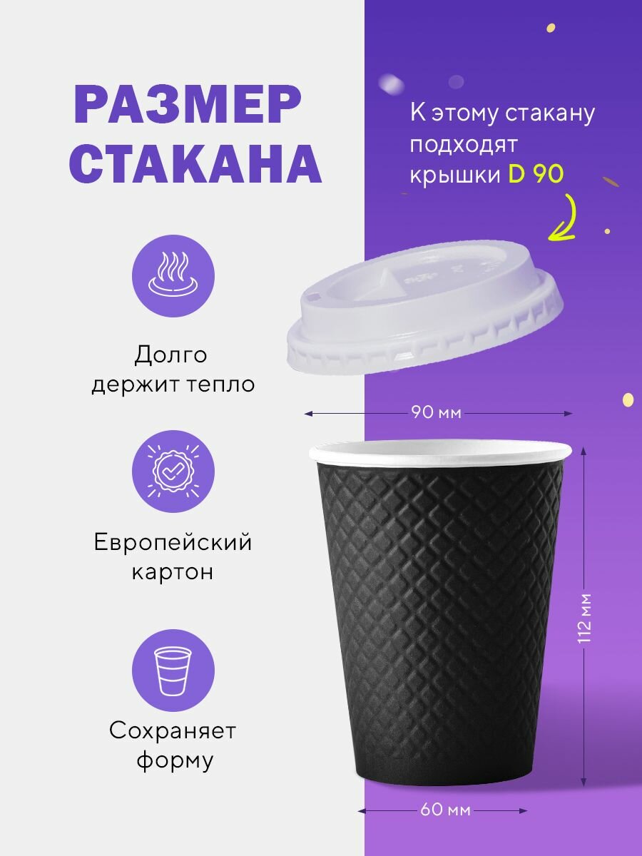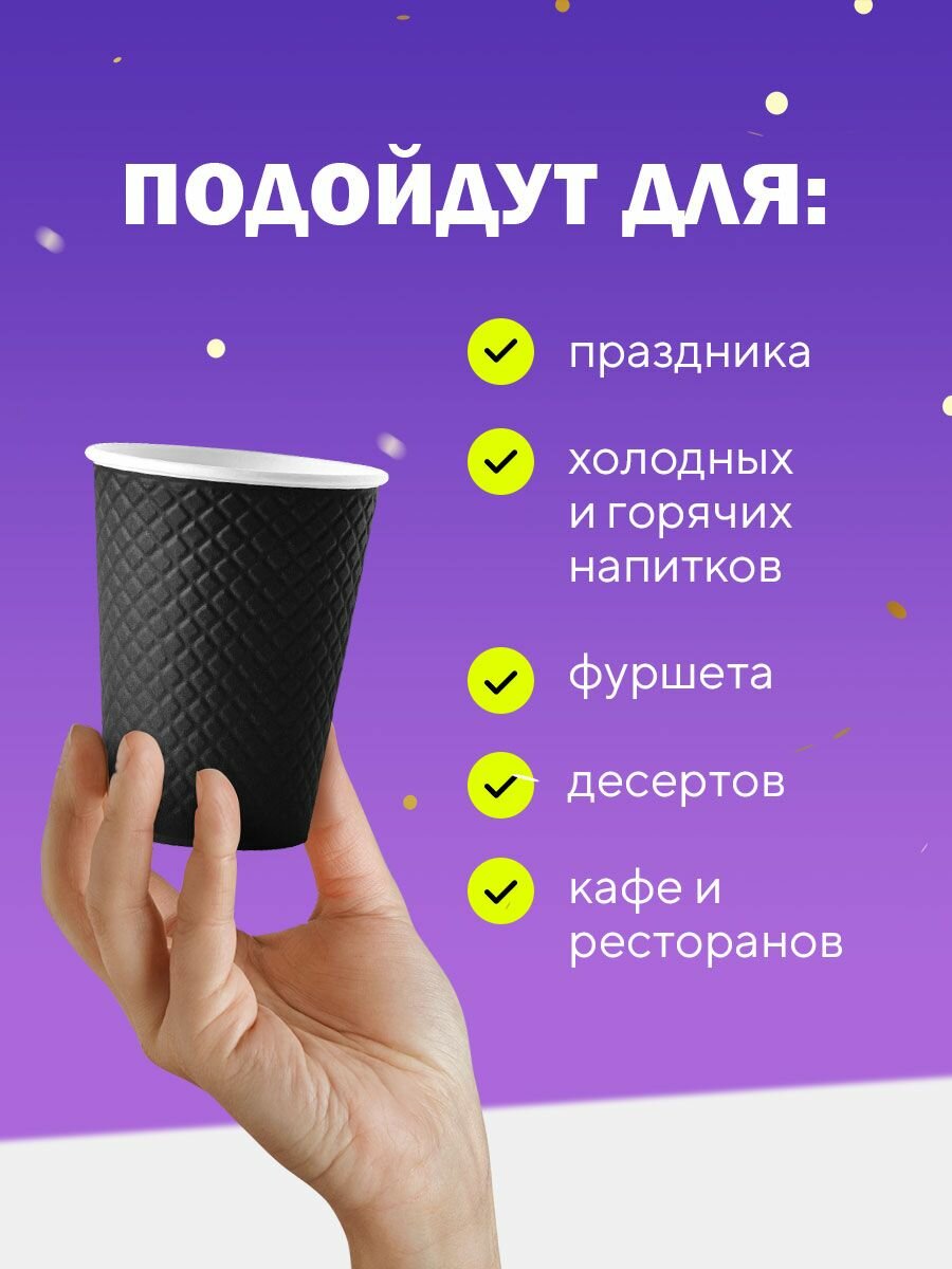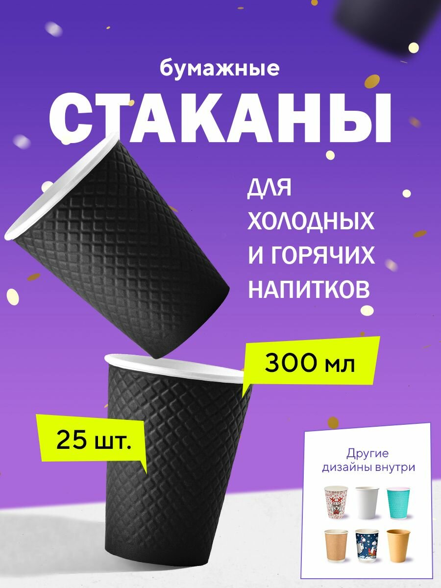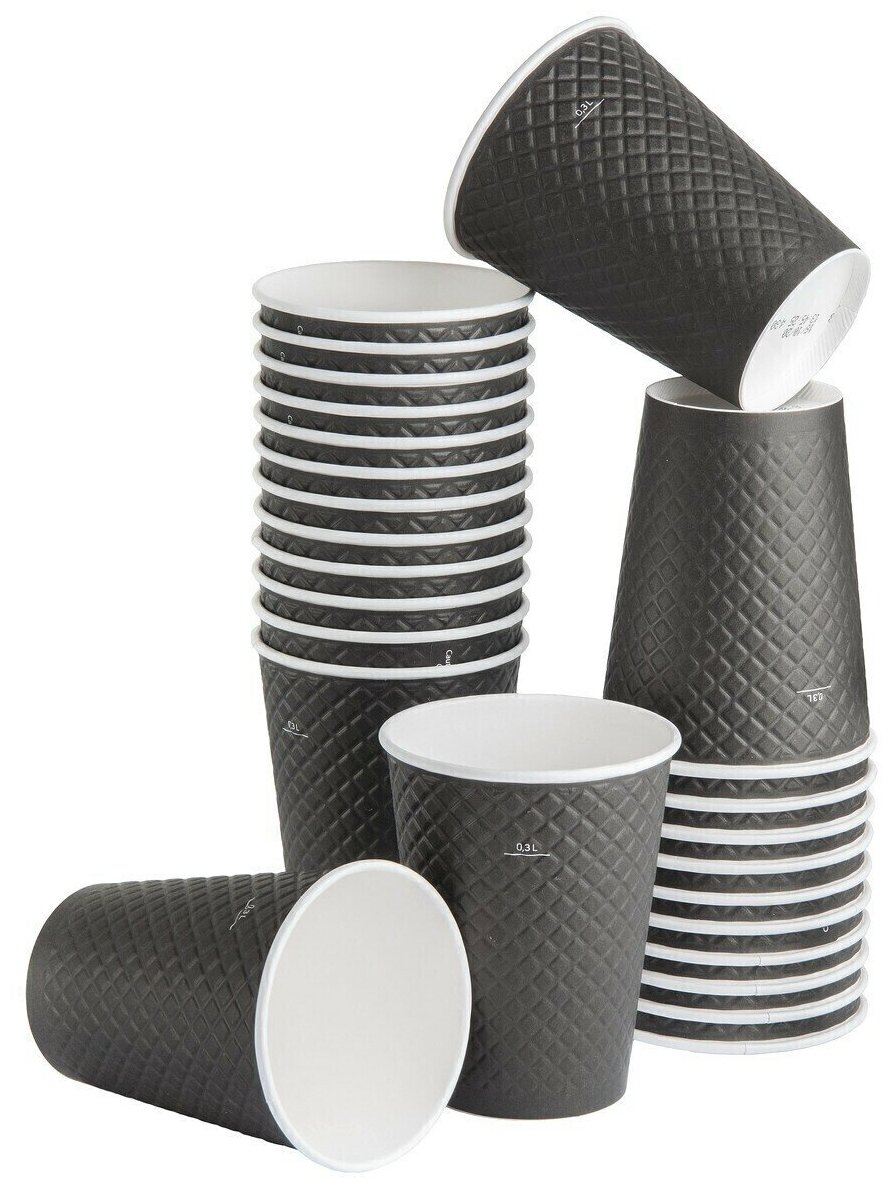 СохранитьОдноразовые бумажные двухслойные стаканы Formacia, объем 300 мл, в наборе 25 шт. цвет черный, стаканчики для кофе с вафельной тектурой интересное: