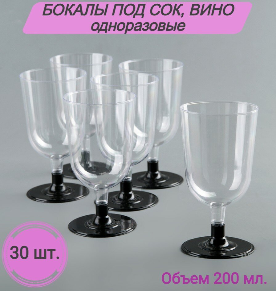 Купить Бокалы Кристалл одноразовые для вина шампанского пластиковые фужеры посуда для праздника набор 30 шт 200 мл на свадьбу