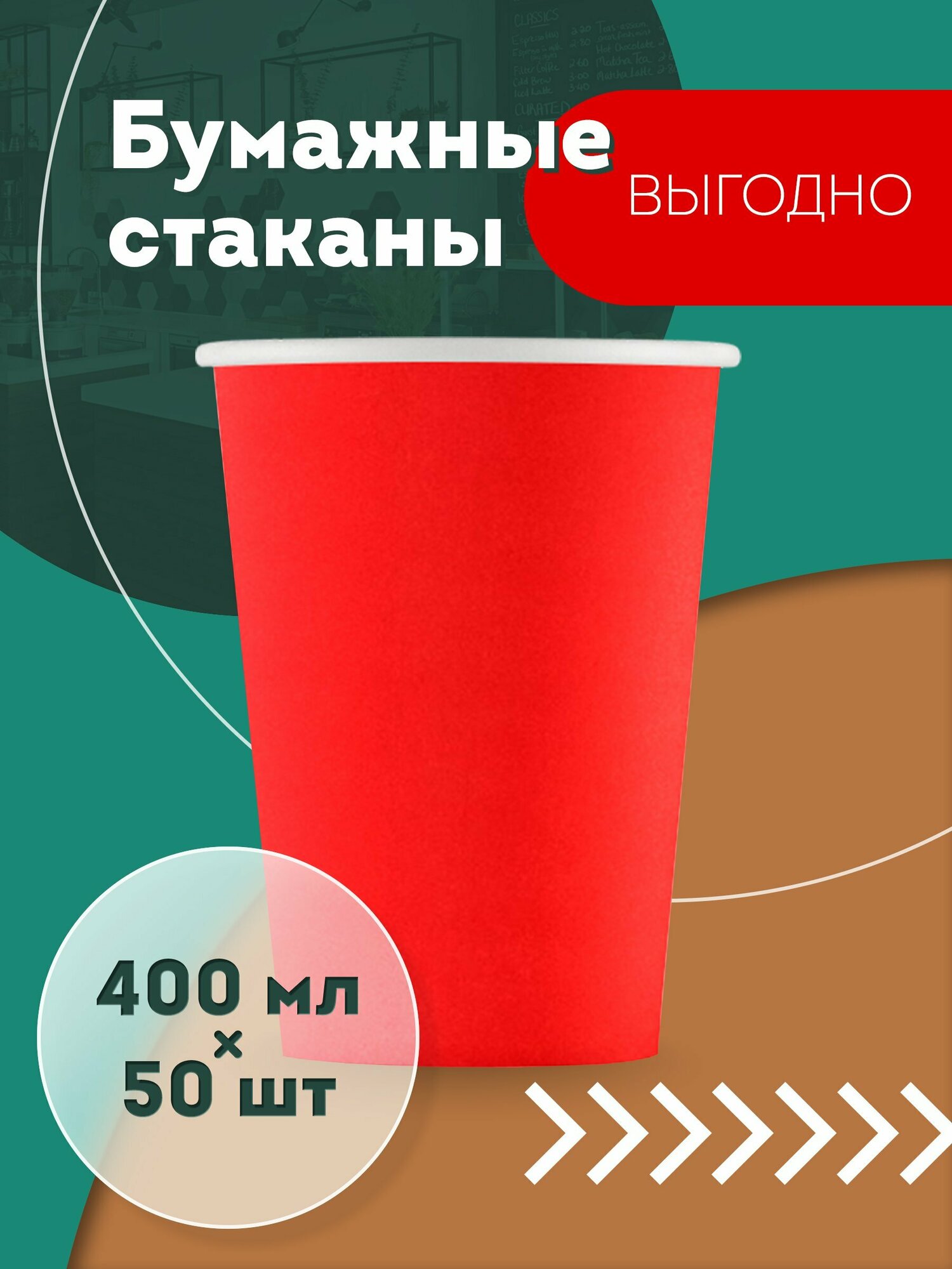Набор одноразовых бумажных стаканов, 400 мл, 50 шт, красные, однослойные; для кофе, чая, холодных и горячих напитков интересное: