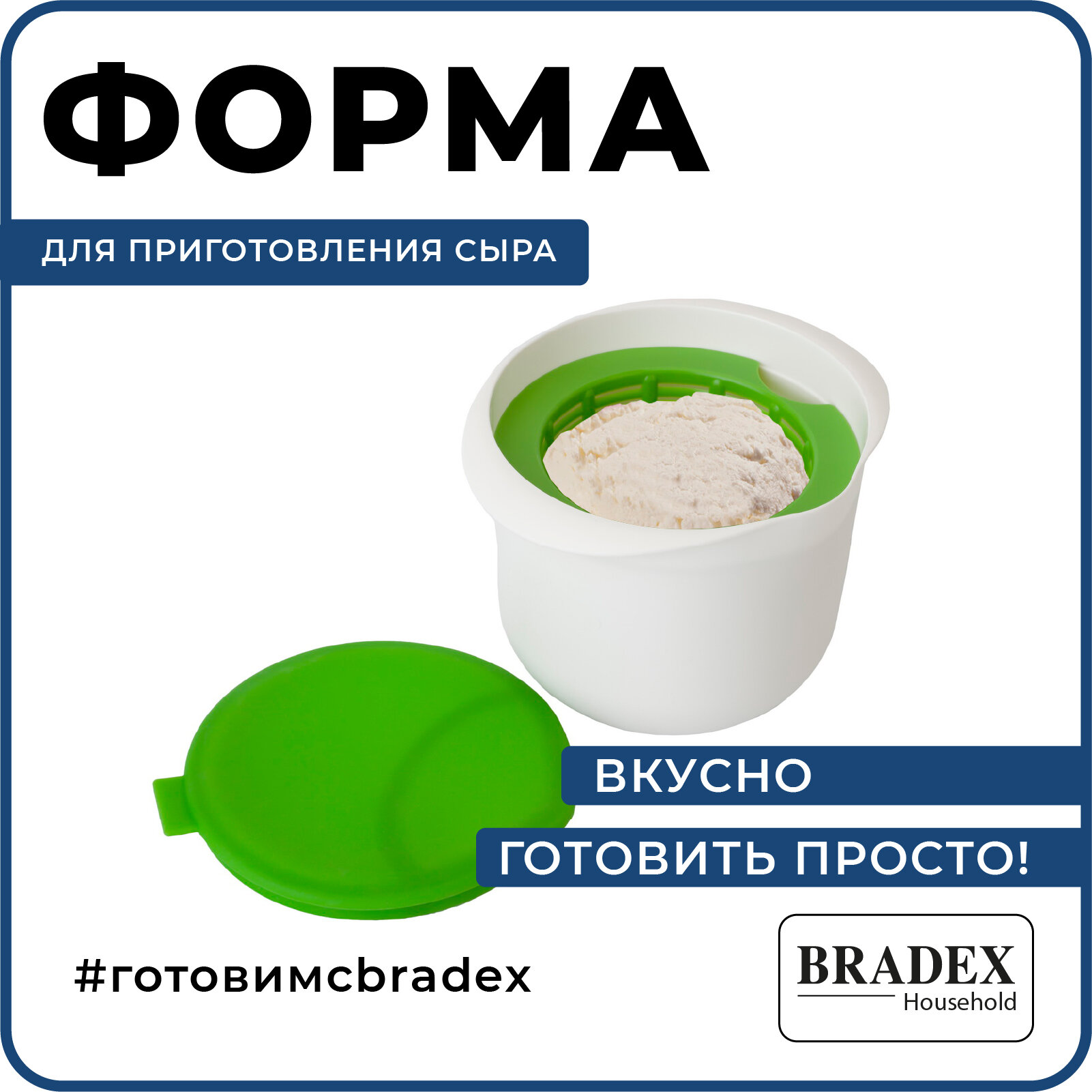 Форма для приготовления домашнего творога и сыра Bradex TK 0192 в микроволновой печи, зеленый
