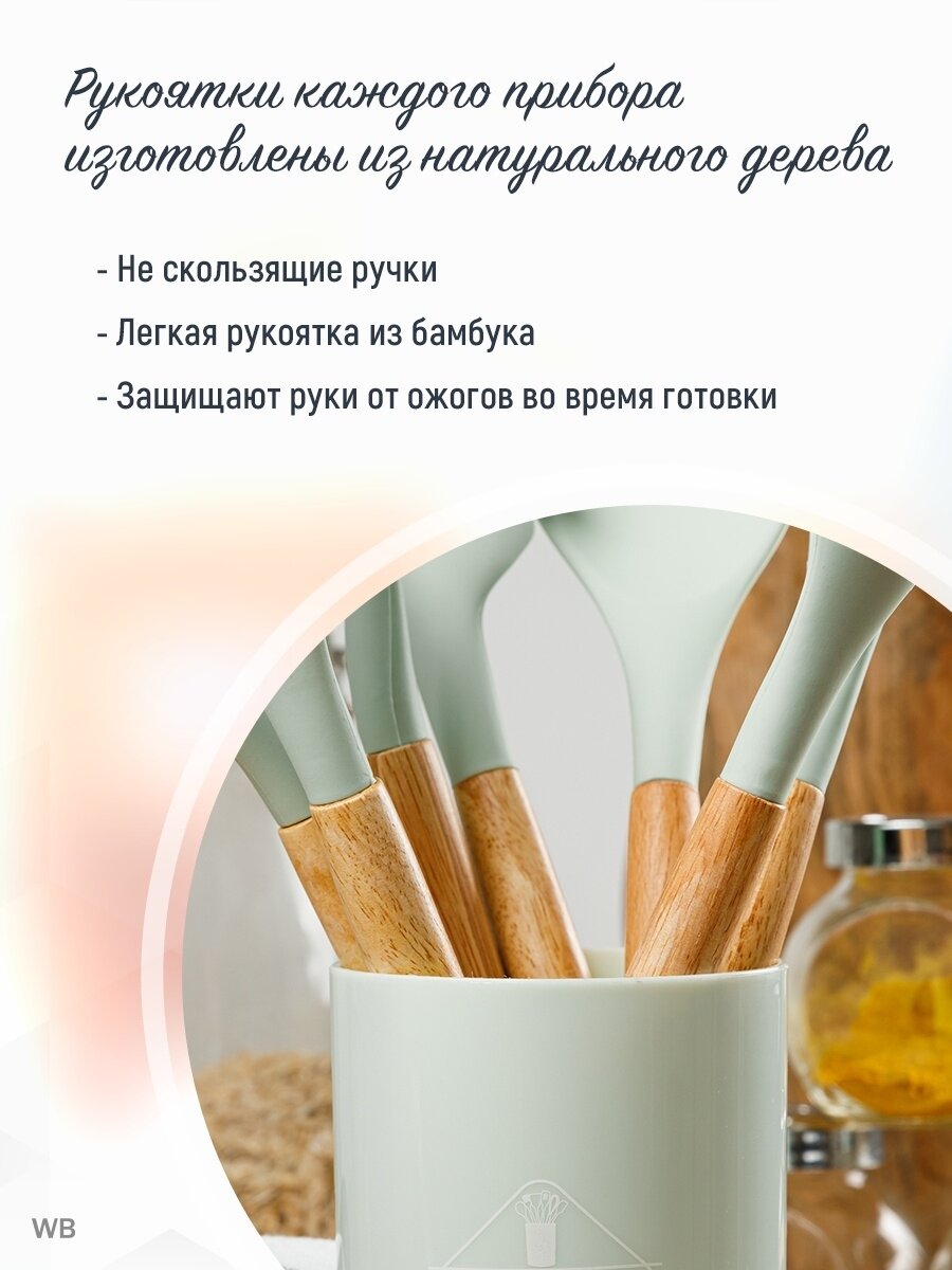 Набор кухонных приборов (мятный) 11 предметов и стакан подставка принадлежности для кухни универсальная готовка интересное: