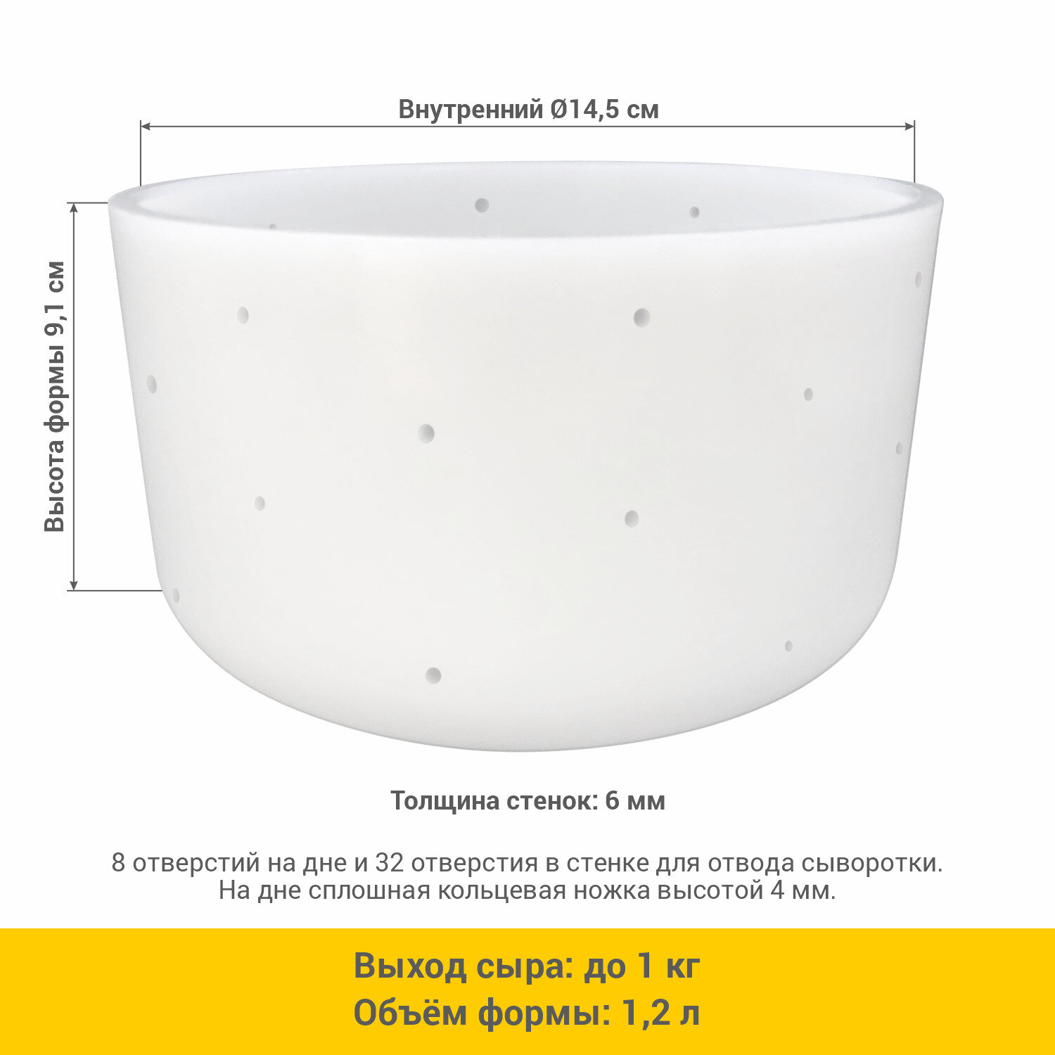 Форма для приготовления домашнего твердого сыра 1,5 кг с поршнем
