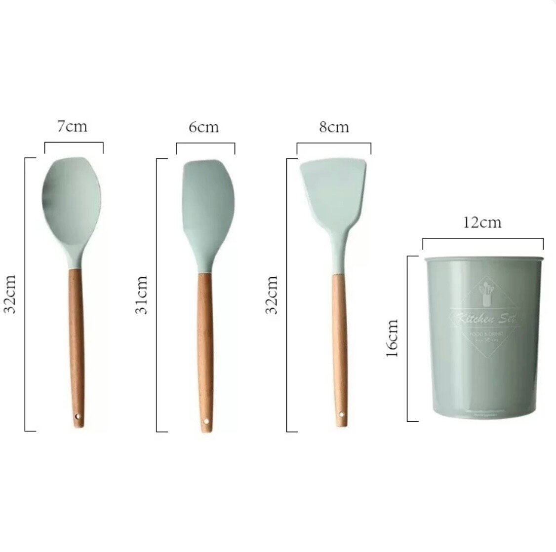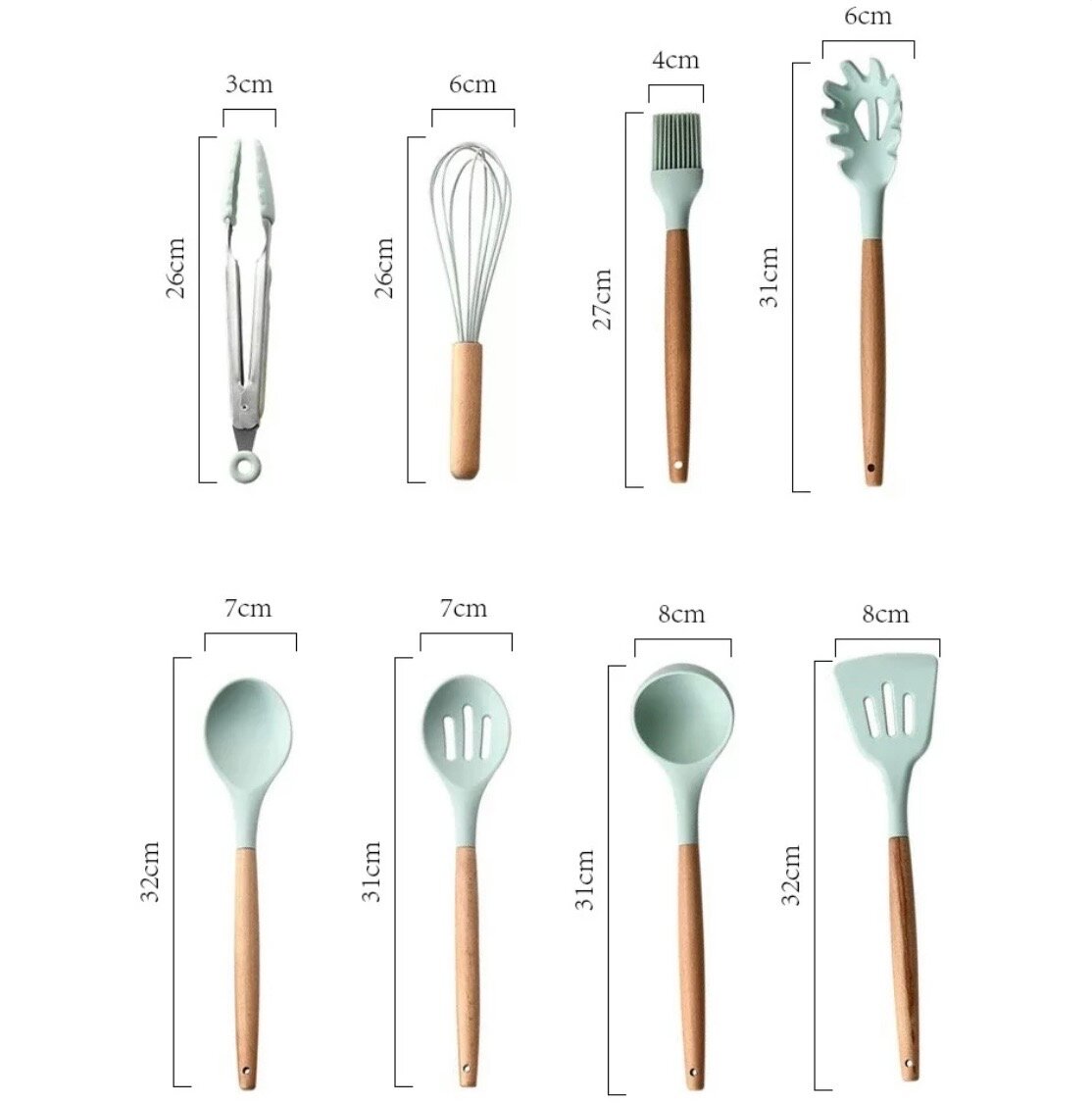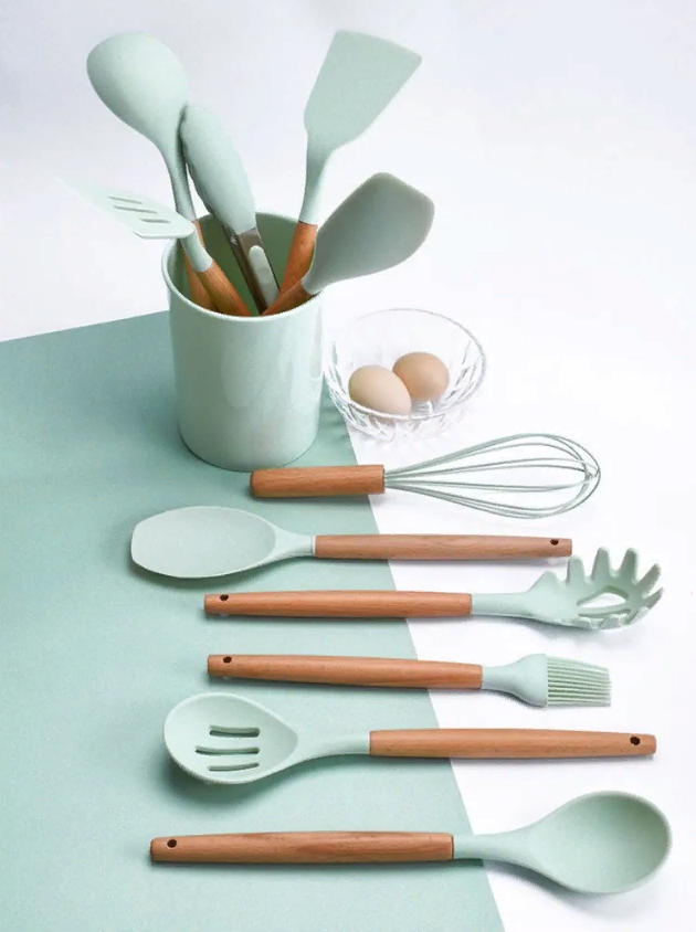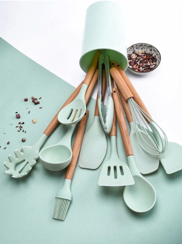Кухонный набор Kitchen Set силикон и бамбук из 12 шт / цвет мятный.