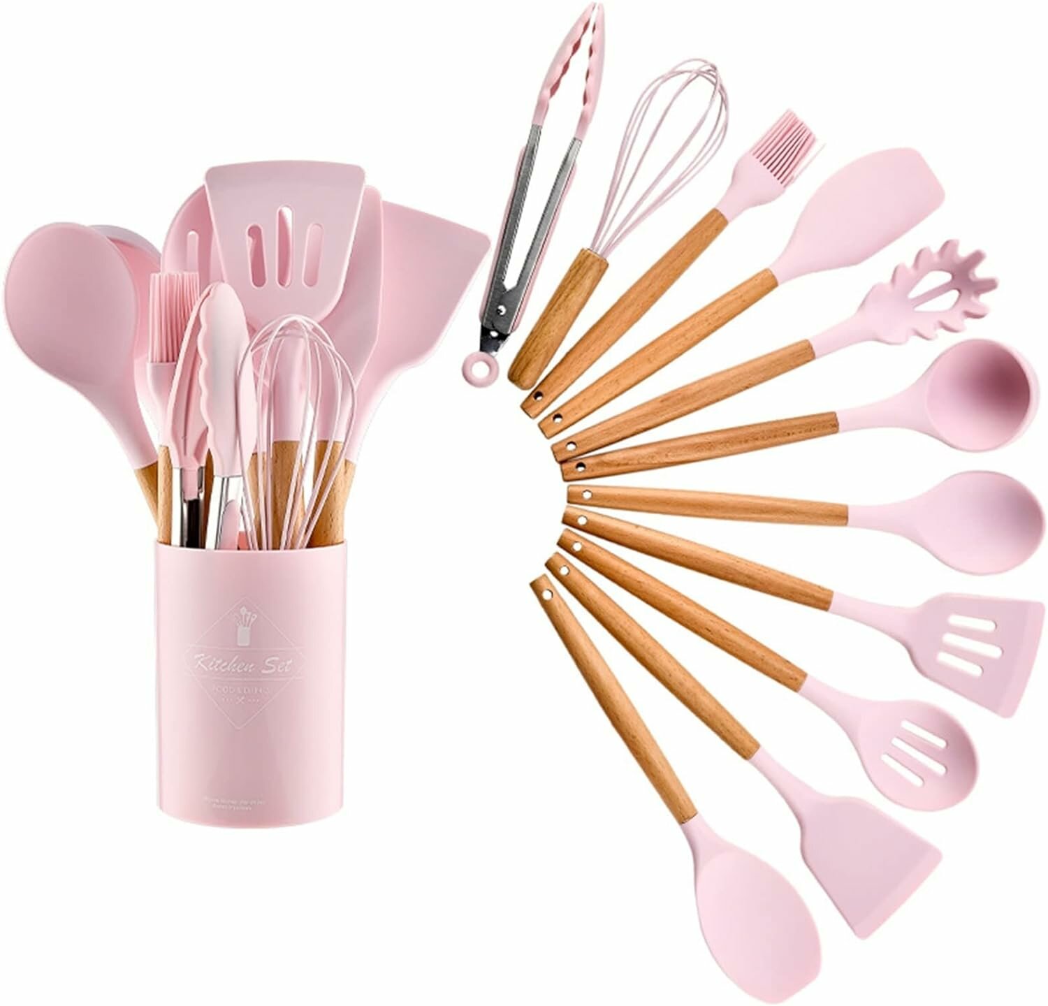 Набор навесок / кухонных принадлежностей Kitchen Set силикон (11 шт + подставка) розовый