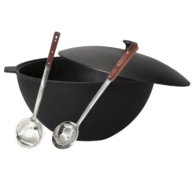 Шумовка плоская из нержавеющей стали для казана с деревянной ручкой / Половник "Ложка разливная, усиленная" Комплект 2 шт. 45 см. интересное: