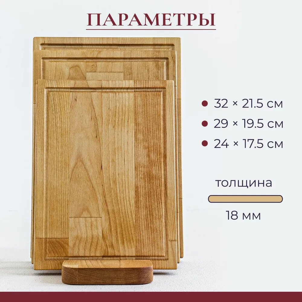 Доска разделочная деревянная для кухни набор + подставка, Набор 2 в 1
