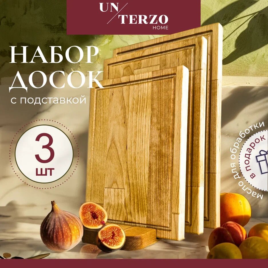 Доска разделочная деревянная UNTERZO HOME набор из 3 штук интересное: