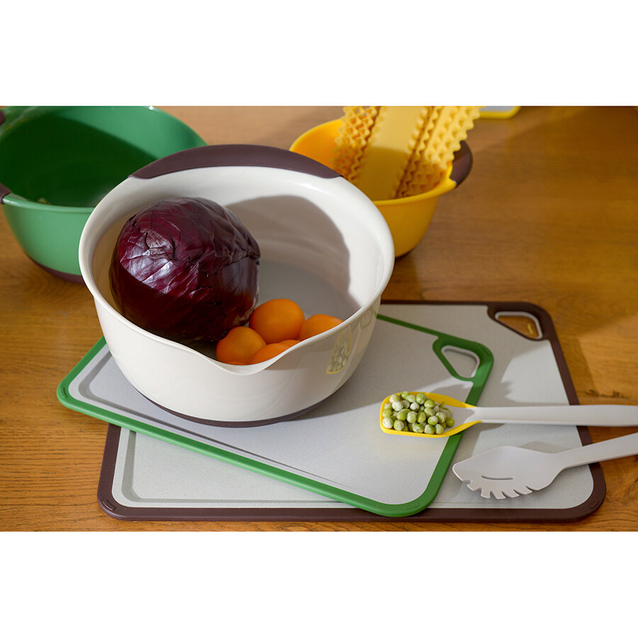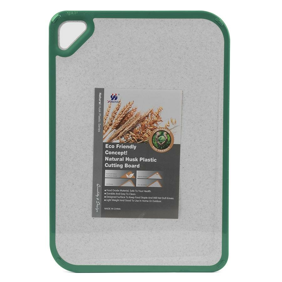 Купить Доска разделочная из пшеничного волокна Homi, 36х25 см, светло-серая с зеленым кантом