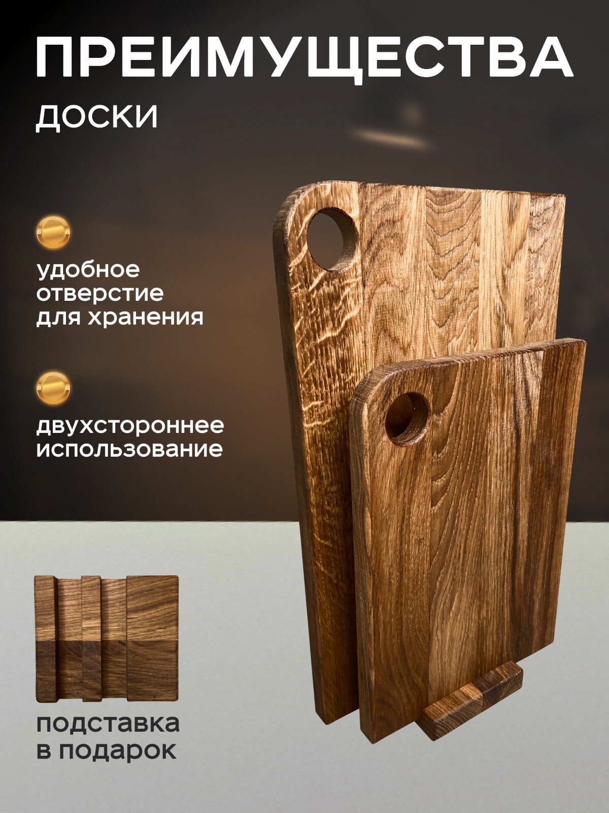 Доска разделочная деревянная большая кухонная красивая дуб с подставкой