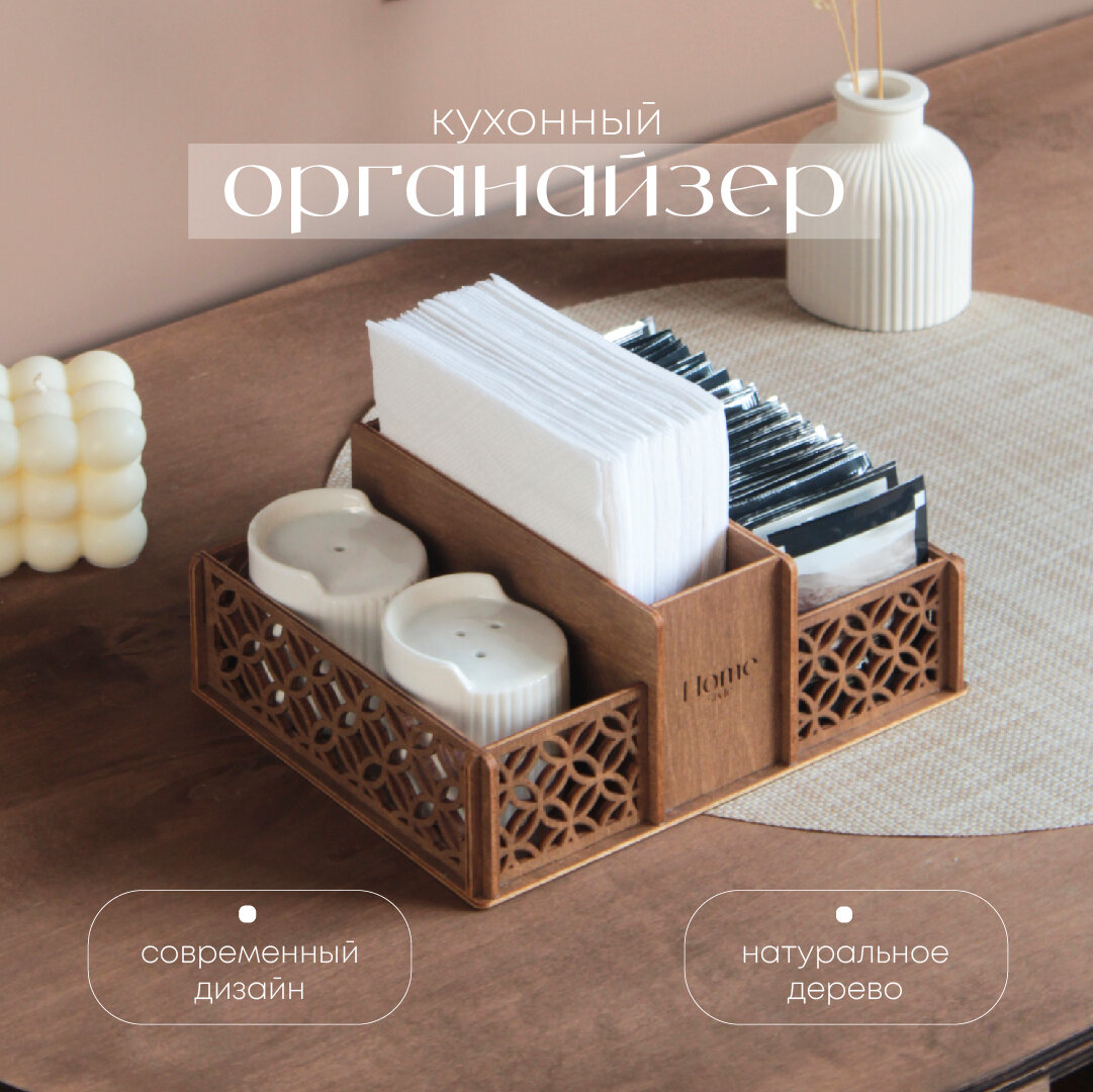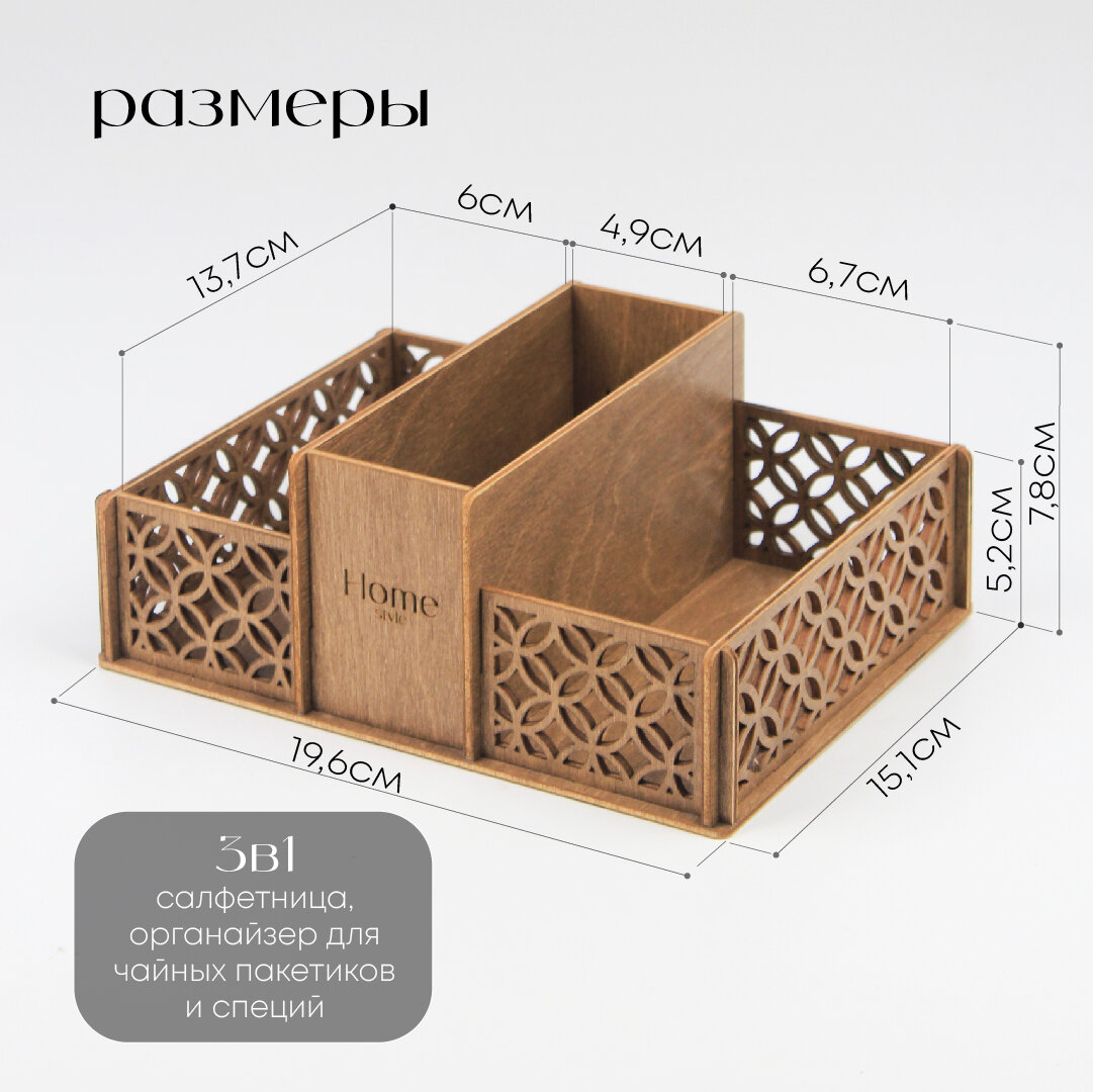 Купить Салфетница деревянная, кухонный органайзер Solyanica, органайзер для чайных пакетиков и специй