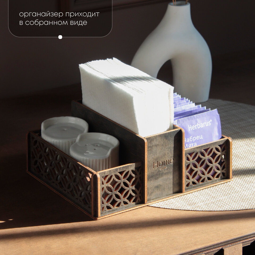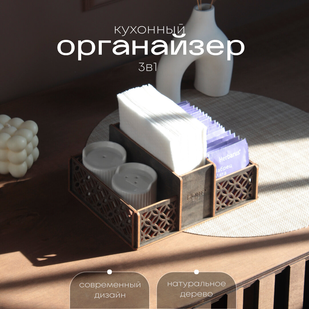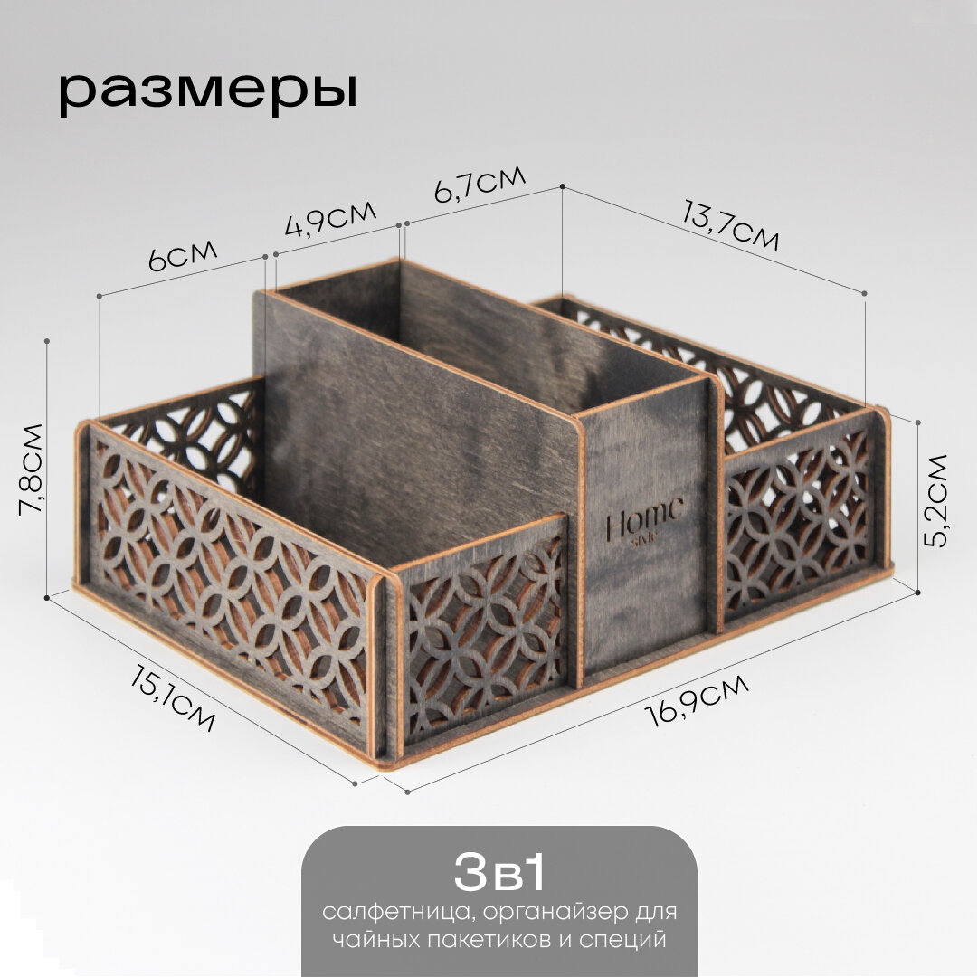 Салфетница деревянная, кухонный органайзер Solyanica, органайзер для чайных пакетиков и специй, цвет серый интересное: