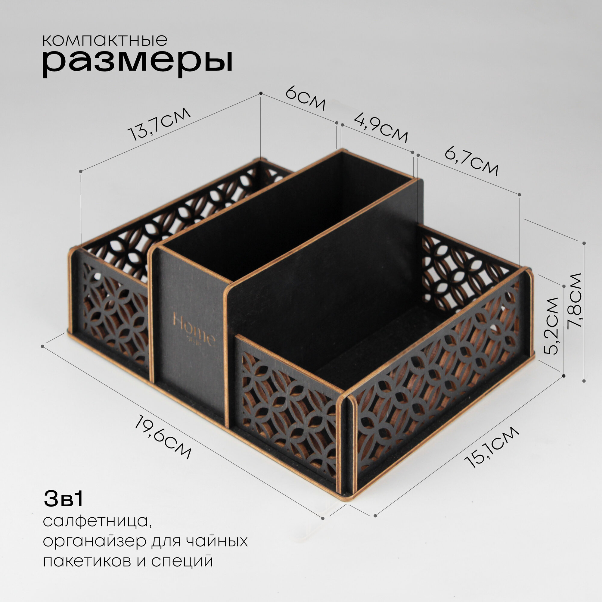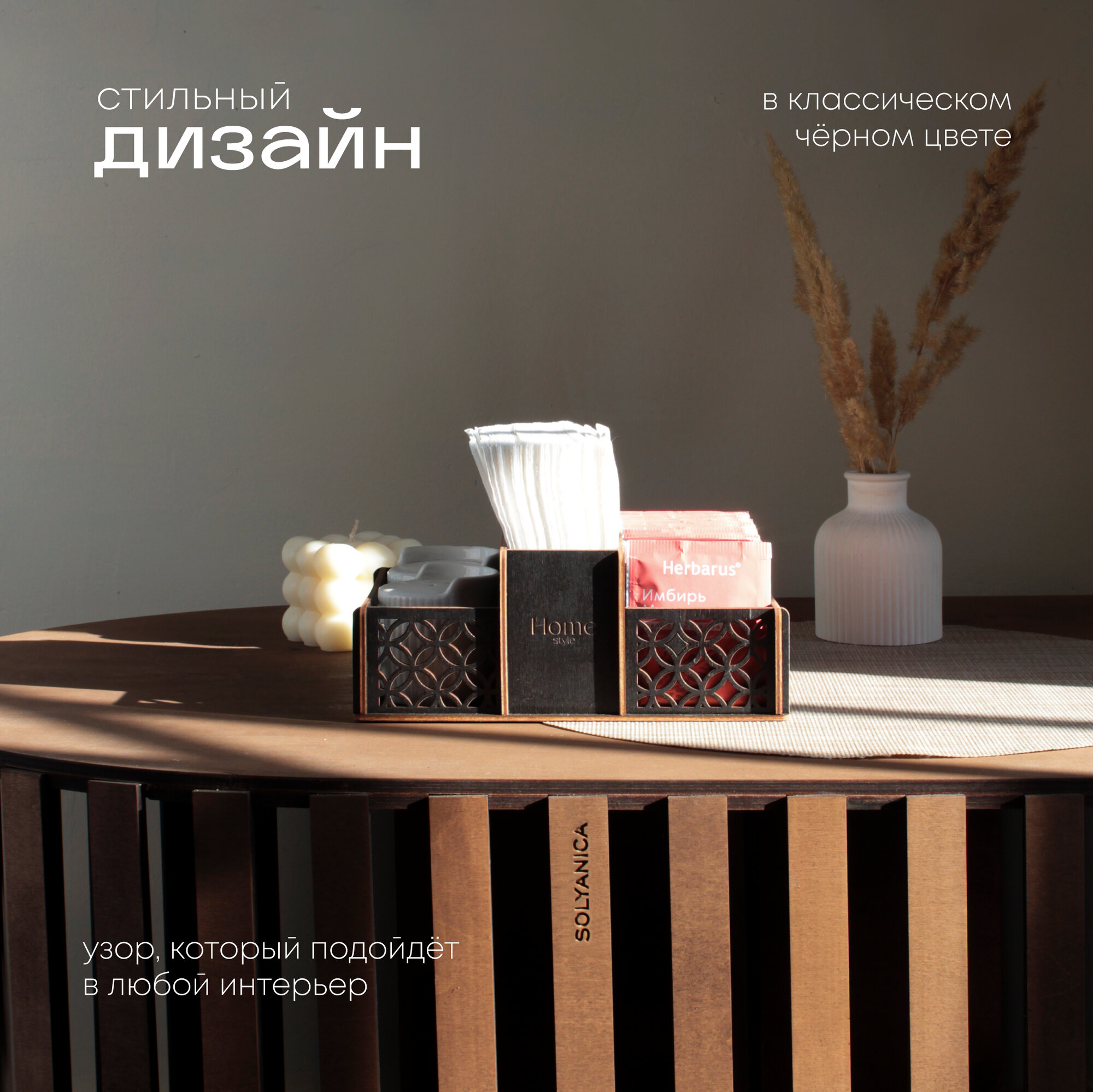 Салфетница деревянная, кухонный органайзер Solyanica, органайзер для чайных пакетиков и специй, цвет чёрный интересное: