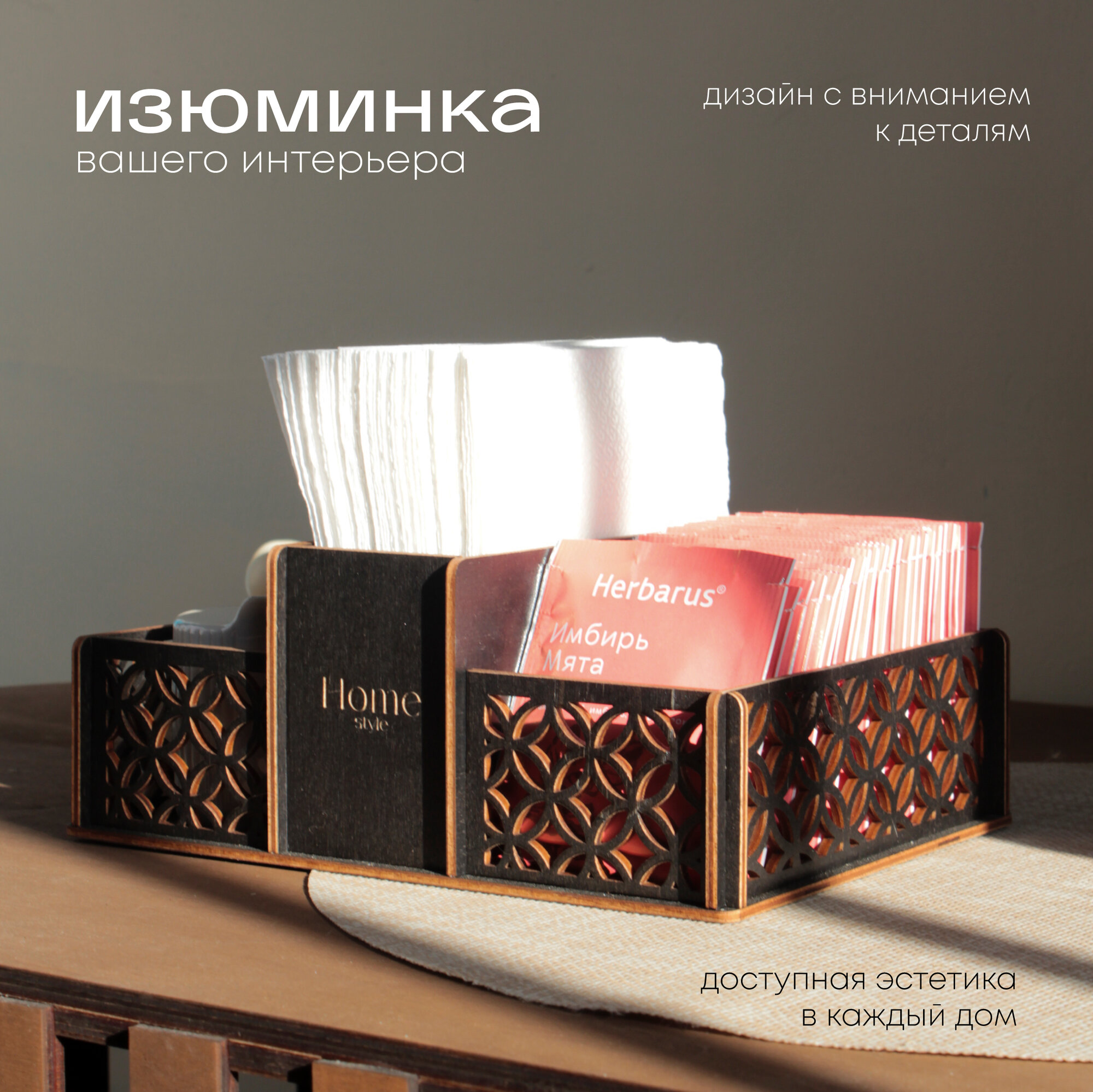 Салфетница деревянная, кухонный органайзер Solyanica, органайзер для чайных пакетиков и специй