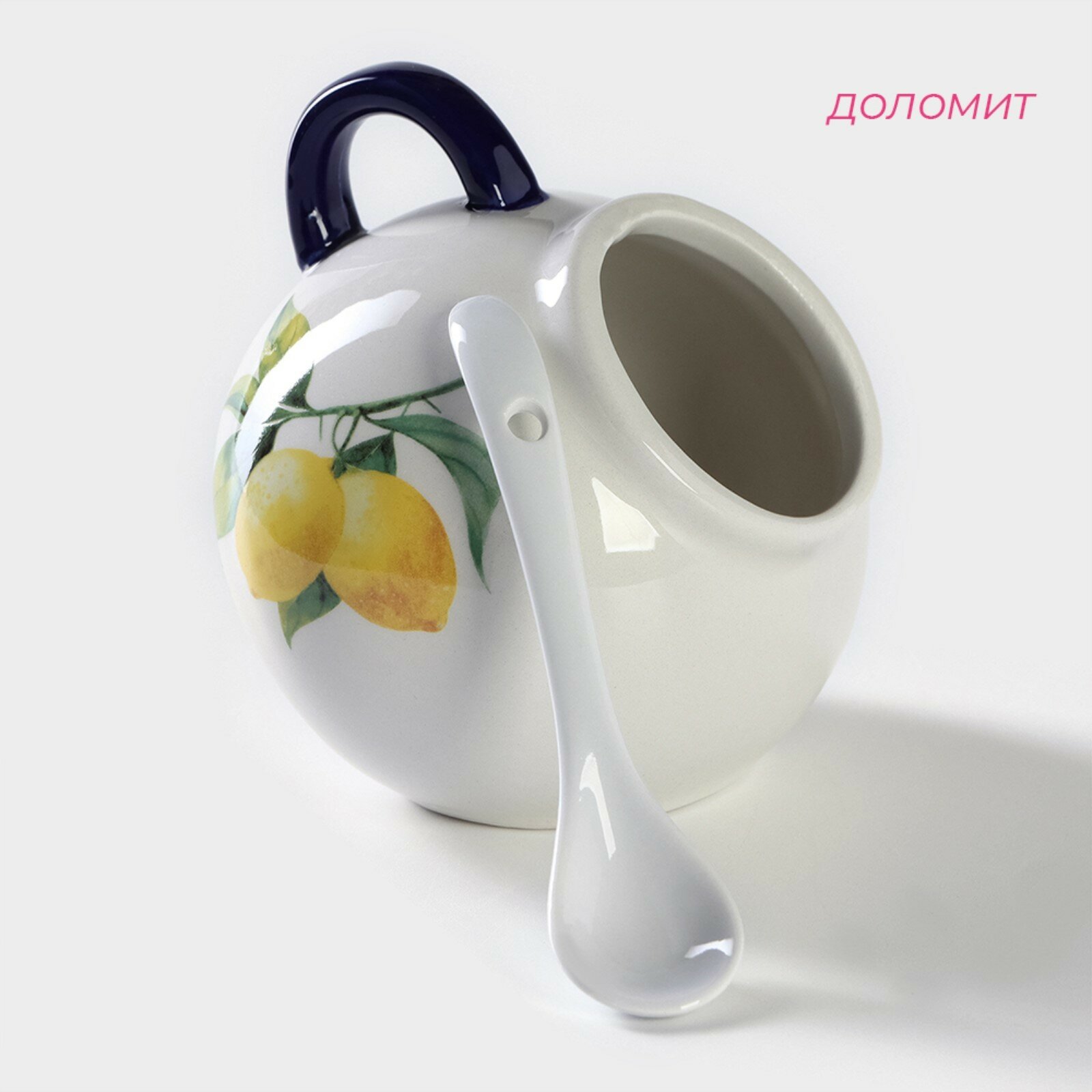 Купить Сахарница с ложкой Доляна «Лимон», 200 мл, цвет белый