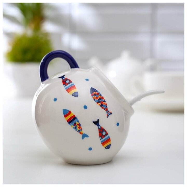 Купить Сахарница с ложкой Доляна «Емеля», 200 мл, цвет белый/DBYB