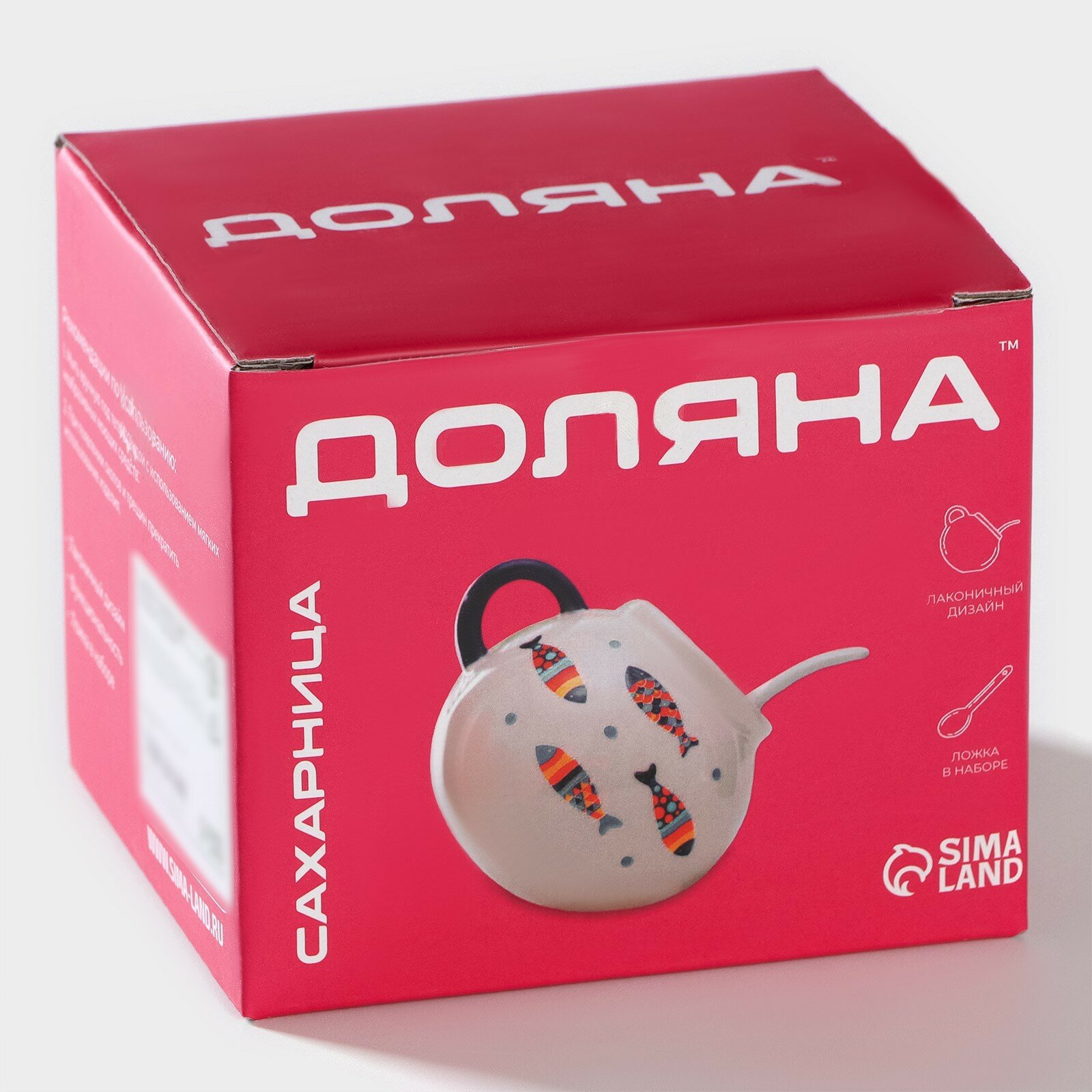 Сахарница с ложкой Доляна «Емеля», 200 мл, цвет белый/DBYB