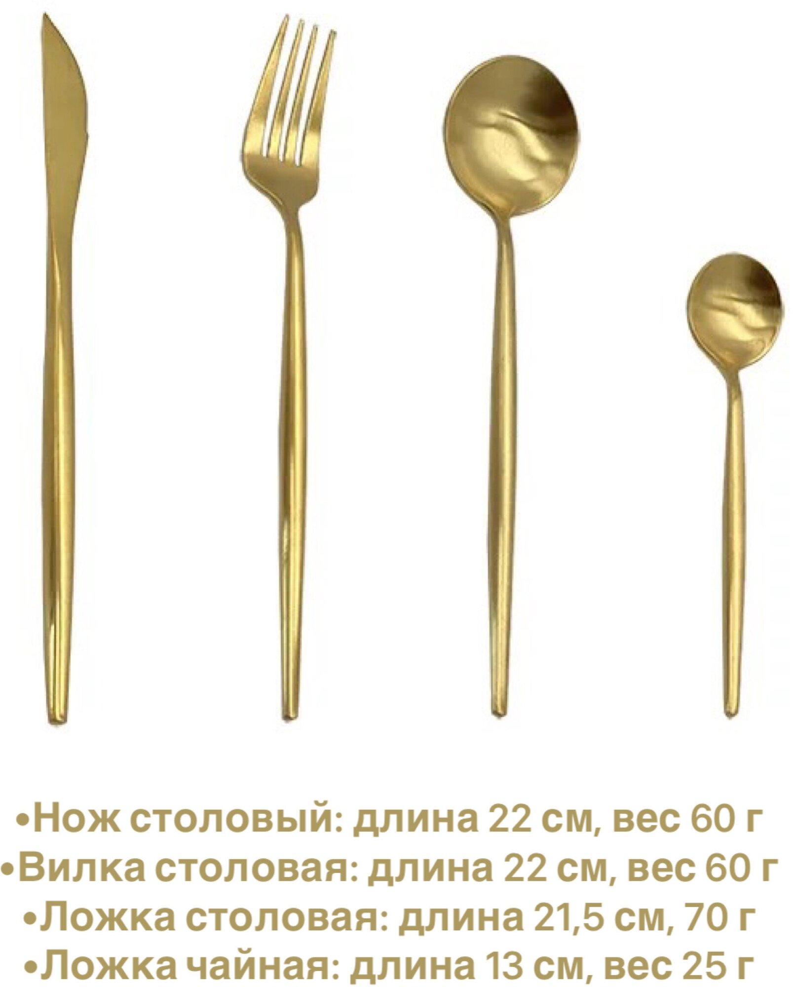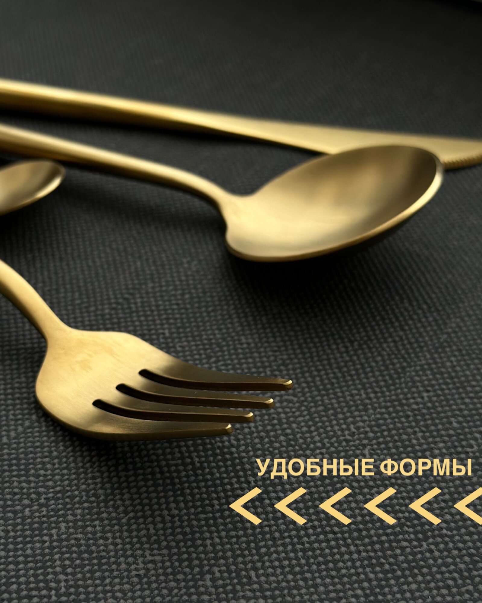 Столовые приборы золотые матовые. Набор на 6 персон, 24 шт интересное: