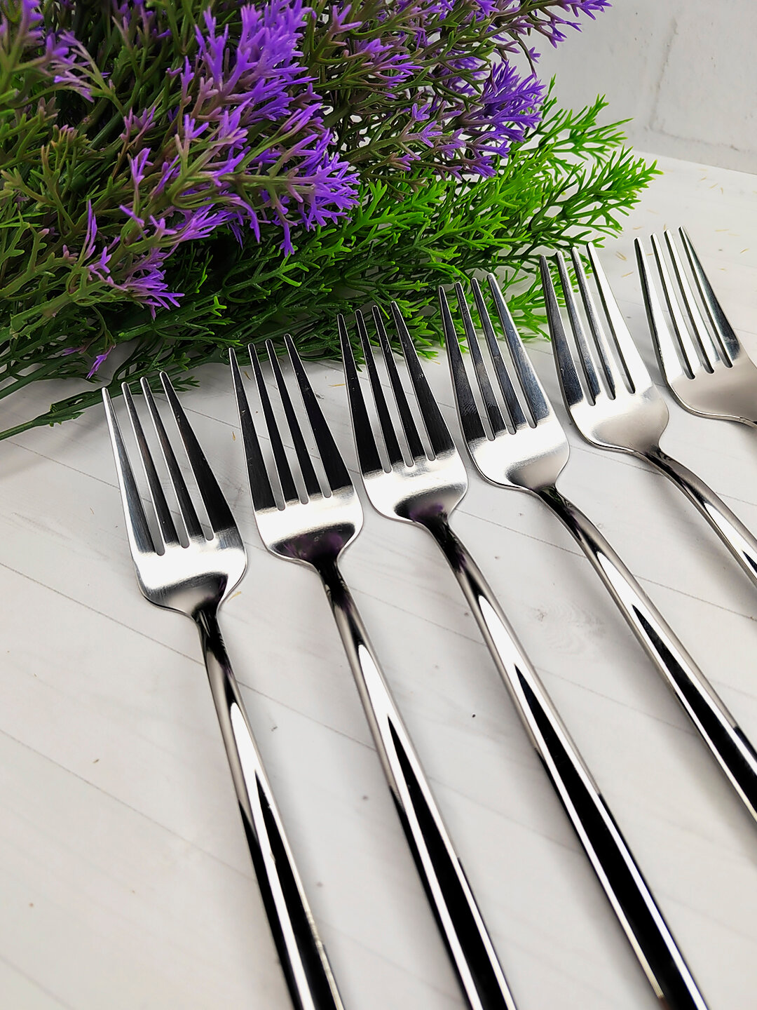 Вилки столовые из нержавеющей стали, длина 20 см, набор 6 штук круглые серебро интересное: