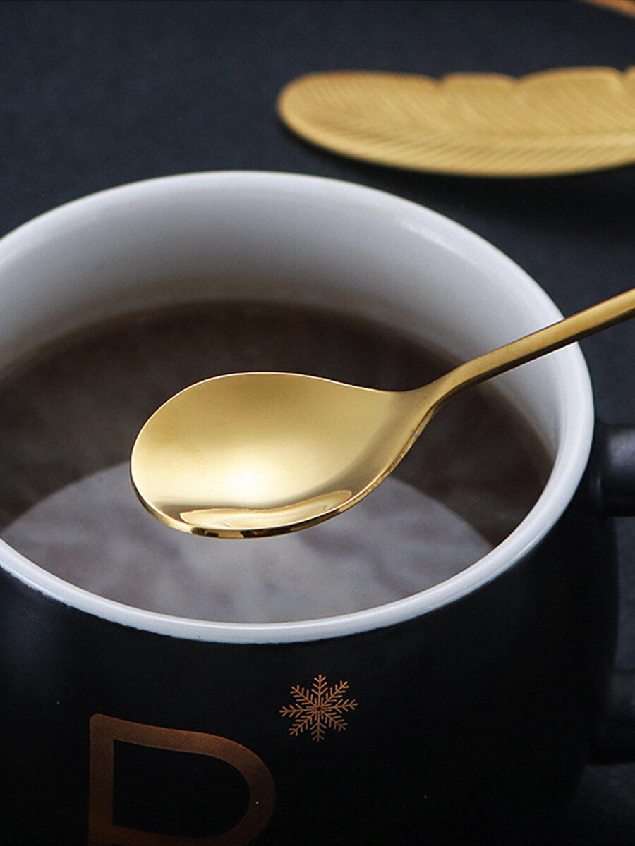 Набор сувенирных подарочных десертных чайных кофейных золотистых ложек в форме лопаты в футляре