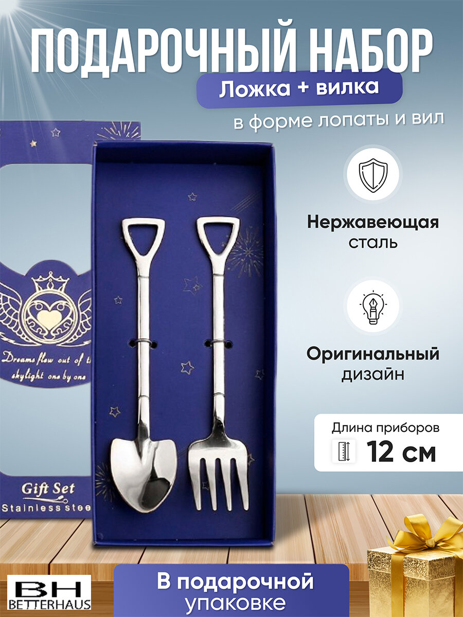 Набор столовых сувенирных приборов BETTERHAUS "Лопаты и Вилы", нержавеющая сталь, посеребренные, 2 шт
