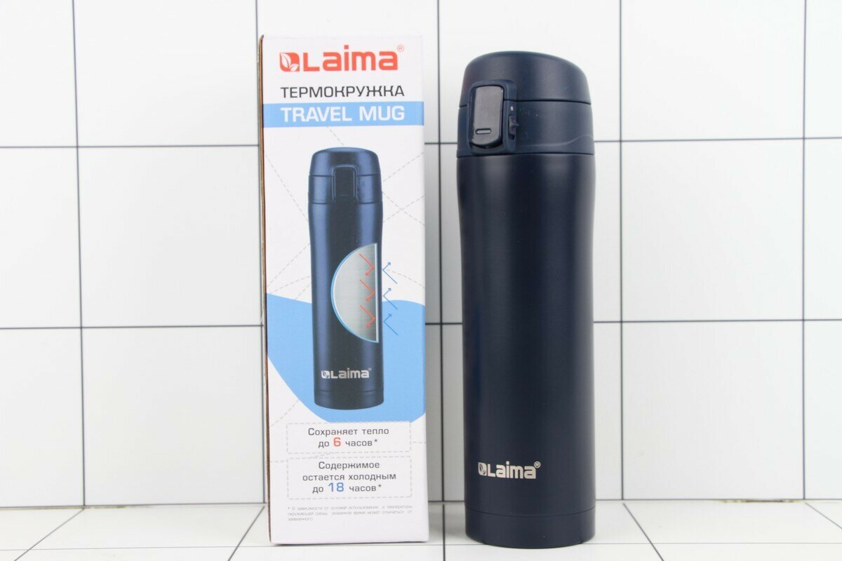 Термокружка LAIMA с двойной стальной стенкой, 470 мл, темно-синий металлик 608821