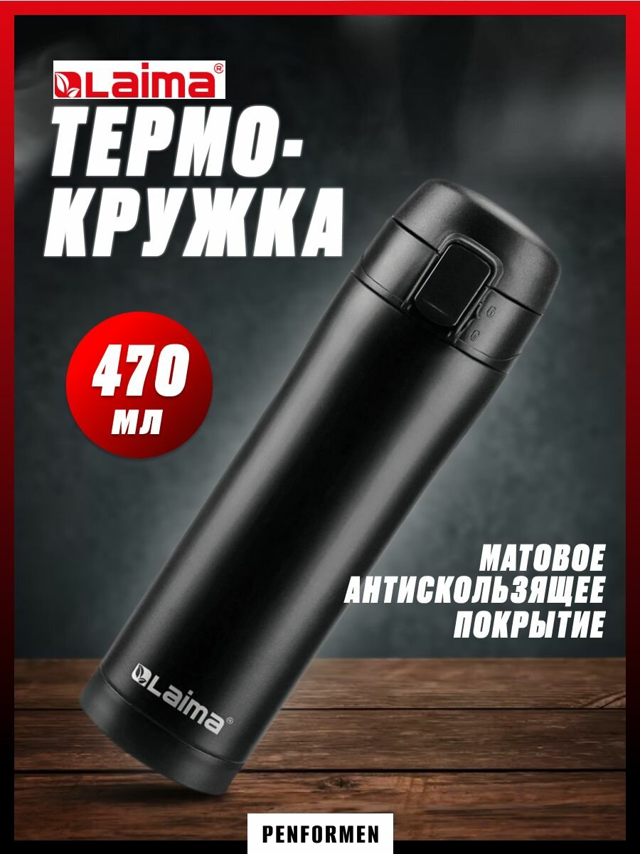 Термокружка с двойной стенкой из нержавеющей стали, 470 мл, цвет безграничный черный, LAIMA интересное:
