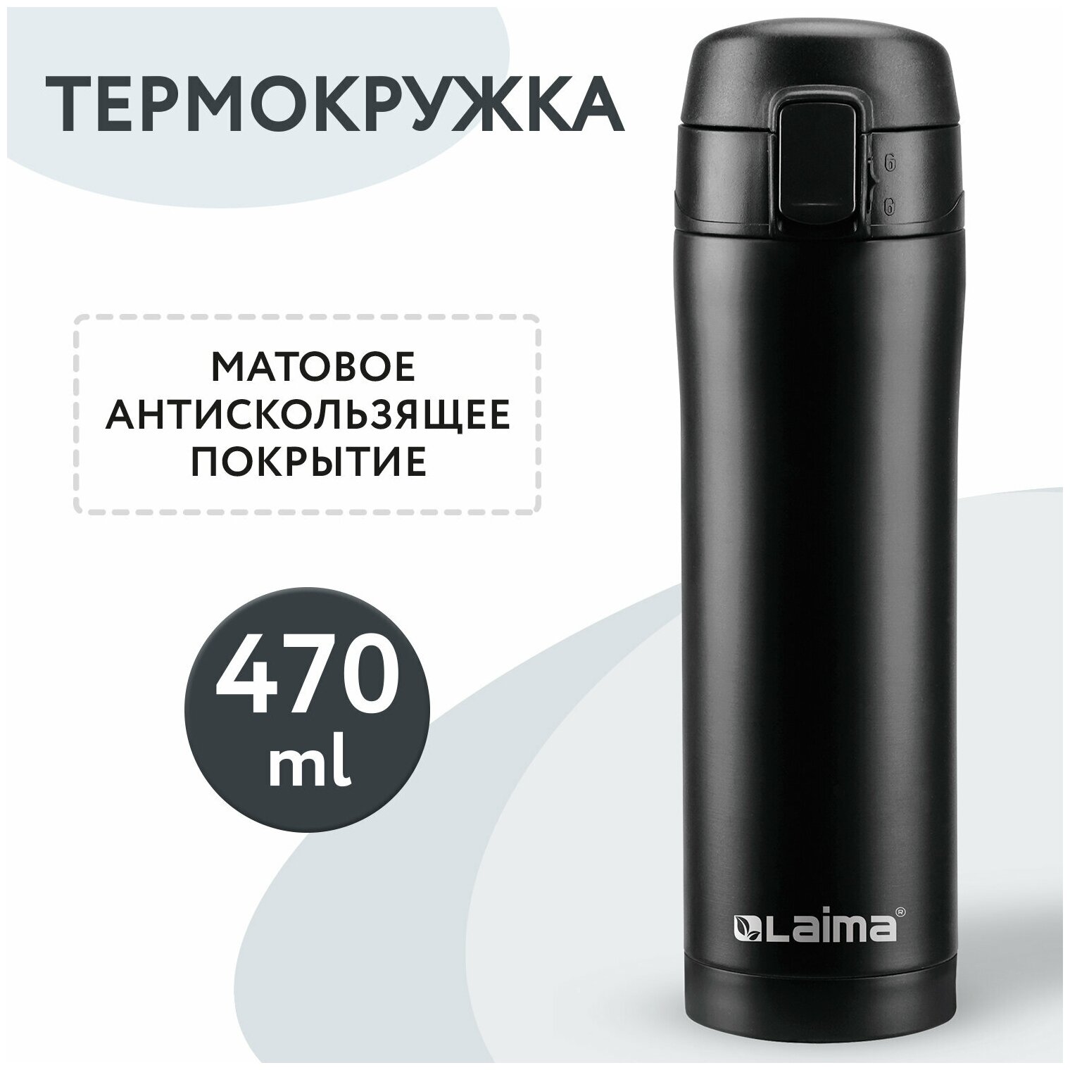 Термокружка с двойной стенкой из нержавеющей стали, 470 мл, цвет безграничный черный, LAIMA