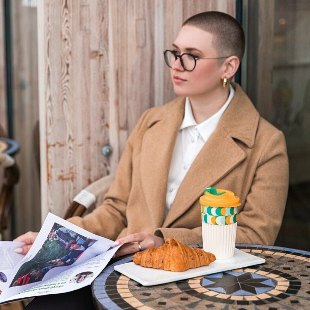 Стакан для горячих напитков с клапаном и декором Phibo Геометрия 450мл, оранжевый 433277308
