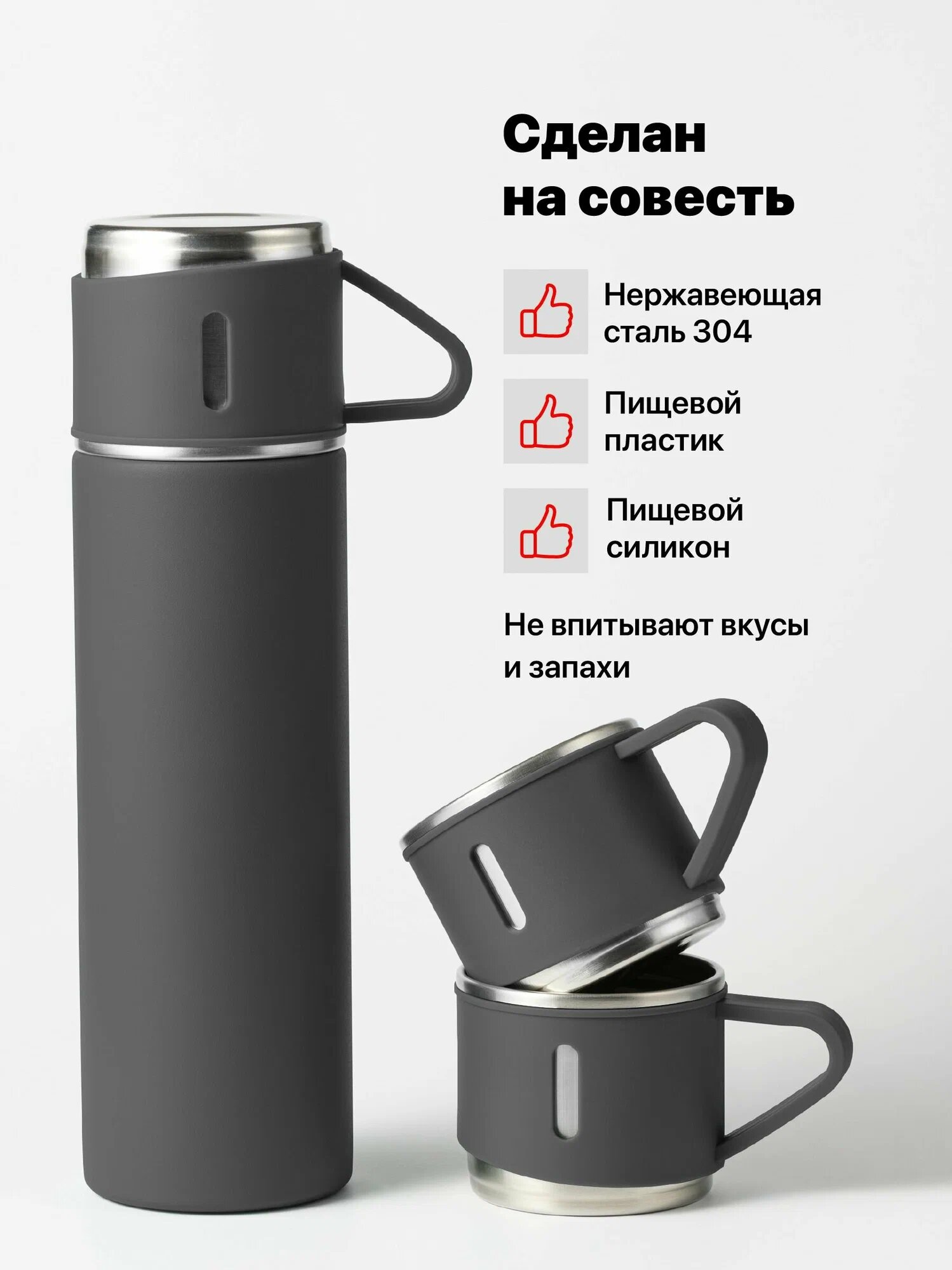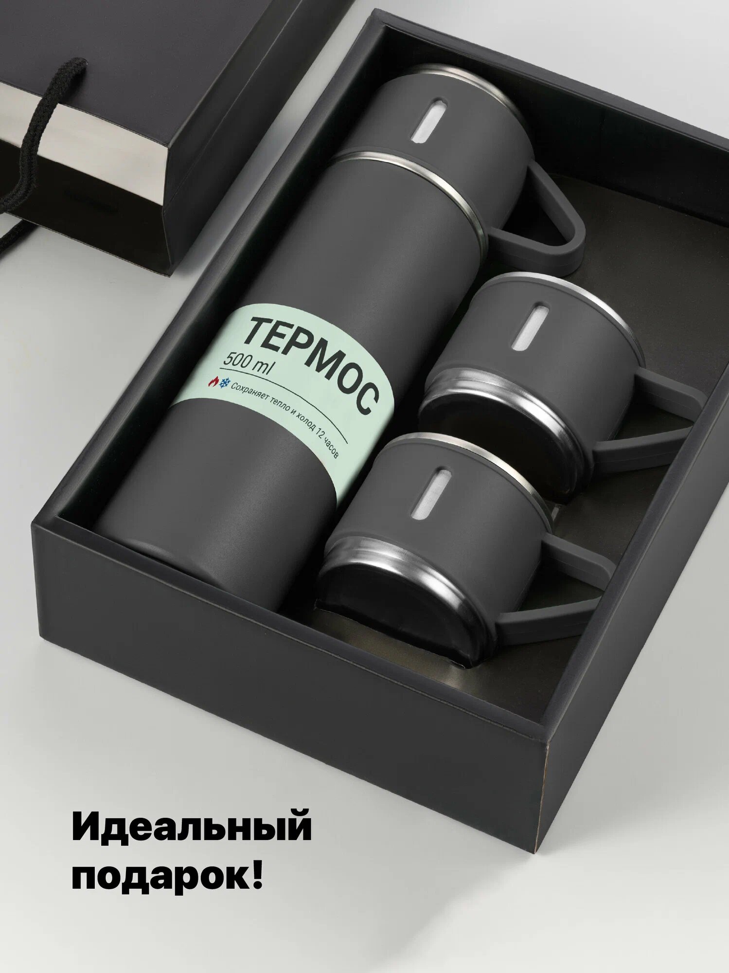 Термос вакуумный с двумя кружками / Подарочный набор / Объем 500 мл интересное: