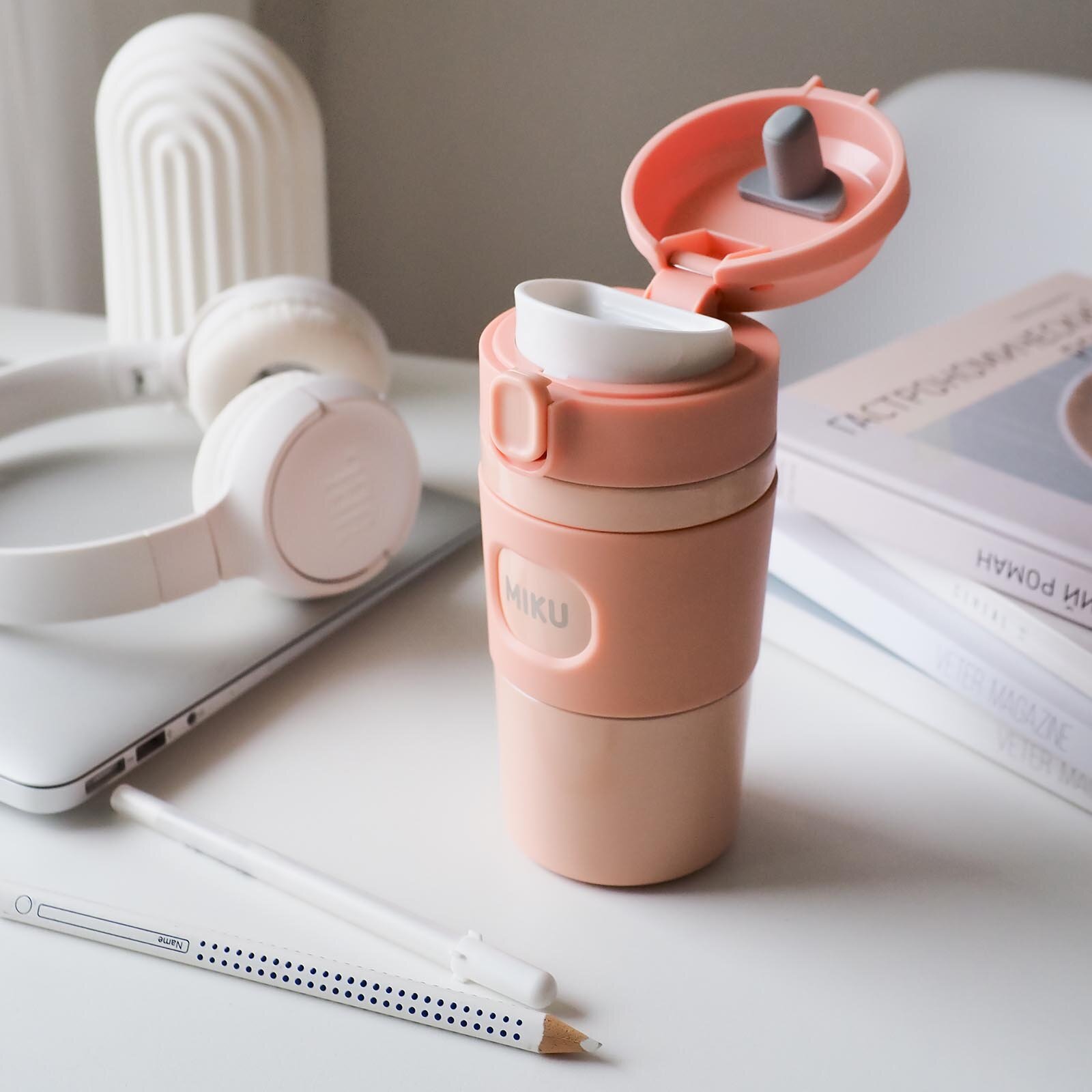 Термокружка Miku TH-MG-350-PCH с кнопкой, персиковый, 0,35 л