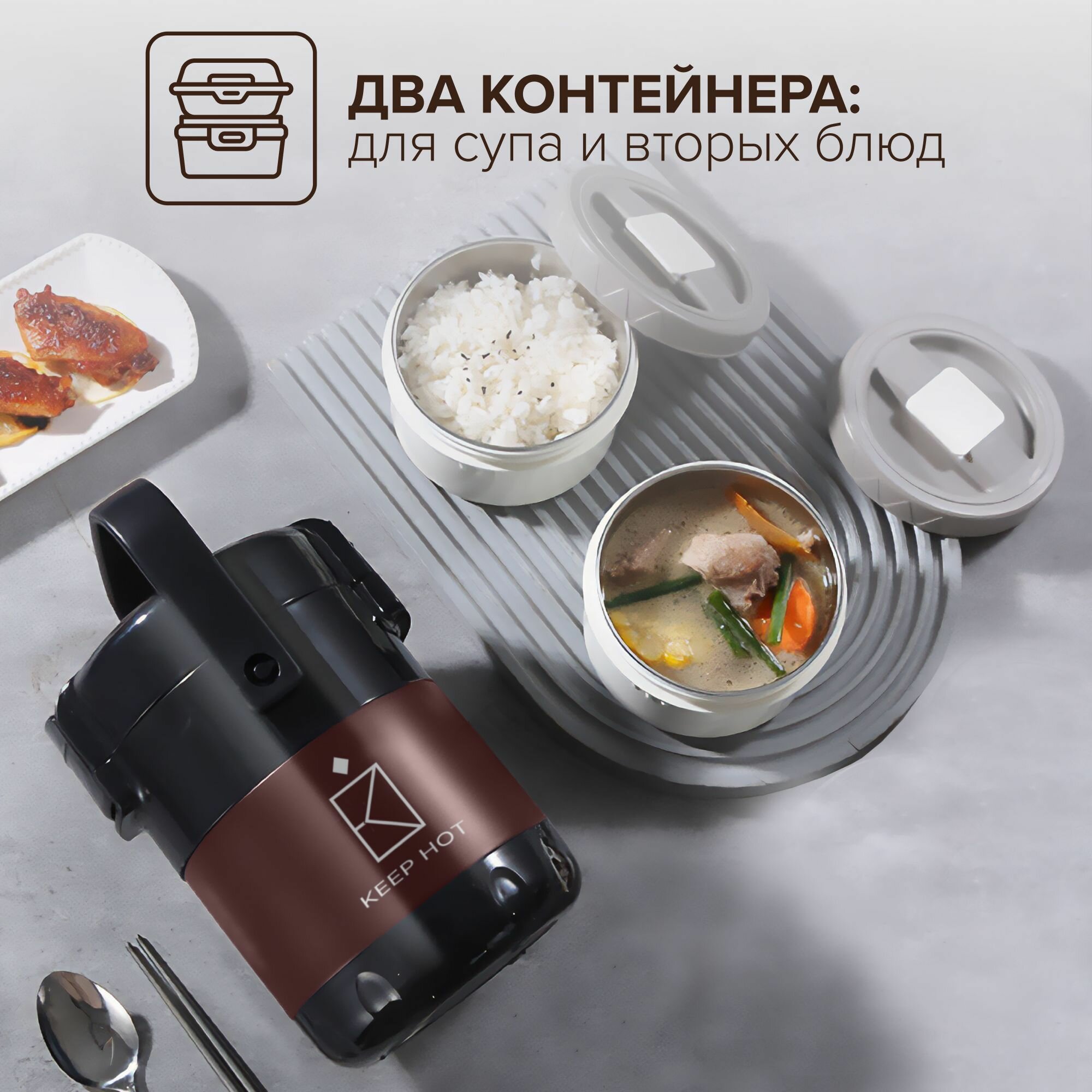 Термос Keep Hot 2-в-1 для еды и напитков, 1,9 л, с широким горлом, ударопрочный, коричневый интересное: