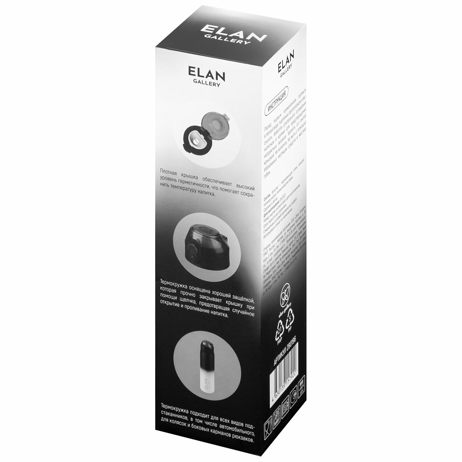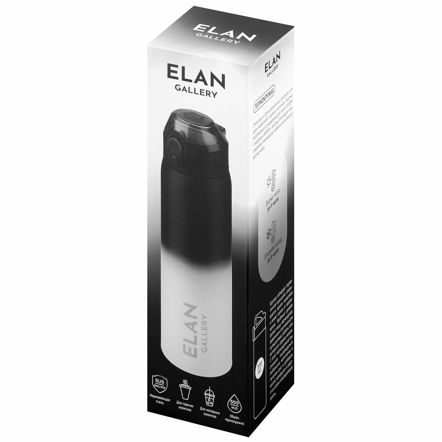 Купить Термокружка Elan Gallery "Черно-белая" 6,5*6,5*24 см 500 мл