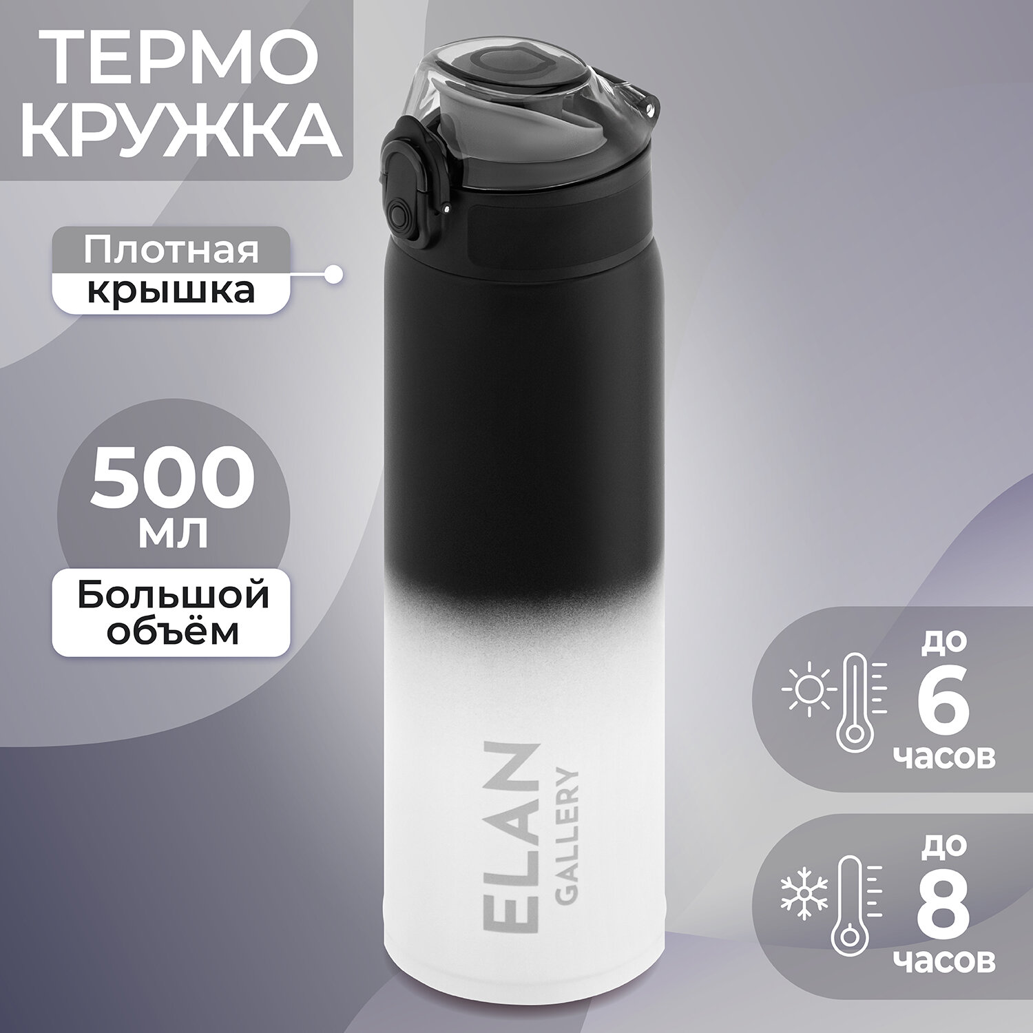 Термокружка Elan Gallery "Черно-белая" 6,5*6,5*24 см 500 мл интересное: