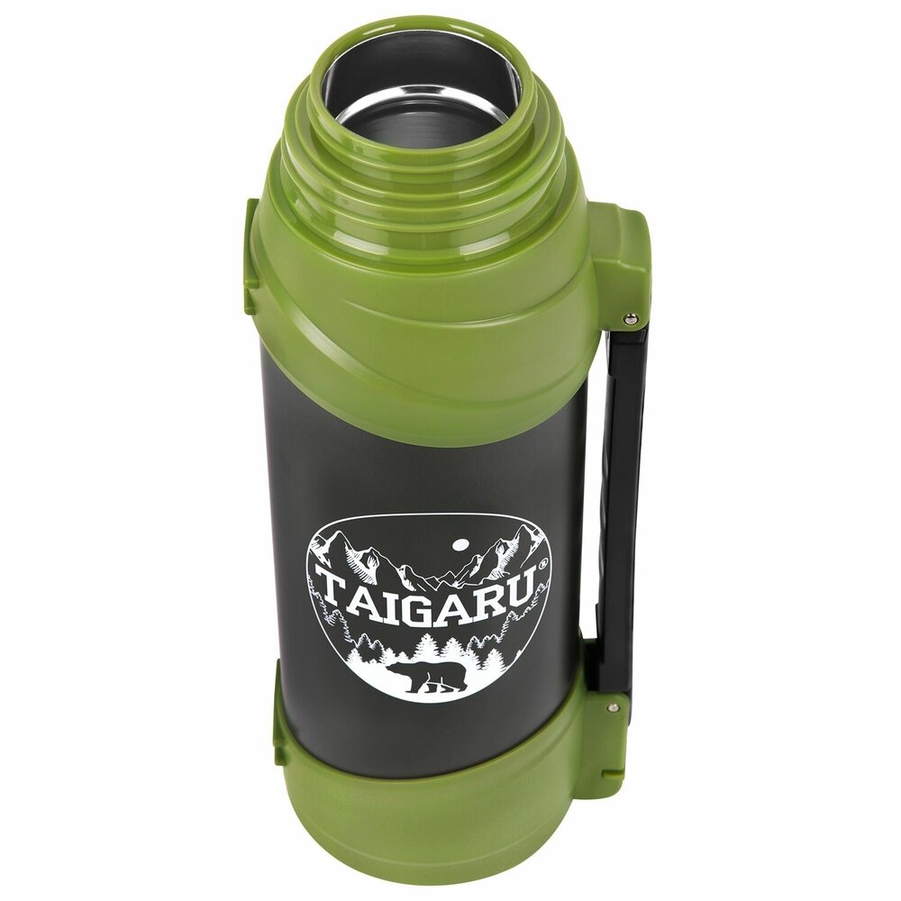 Купить Термос TAIGARU классический, нержавеющая сталь, 2 л, черно-оливковый, 2 кружки, ручка + ремешок