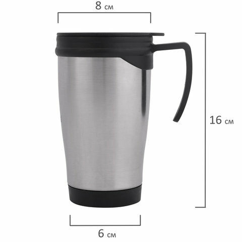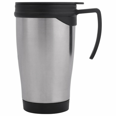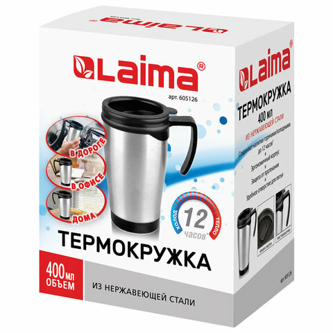 Купить Лайма Термокружка LAIMA, 400мл, нержавеющая сталь, пластиковая ручка, серебристая, 605126
