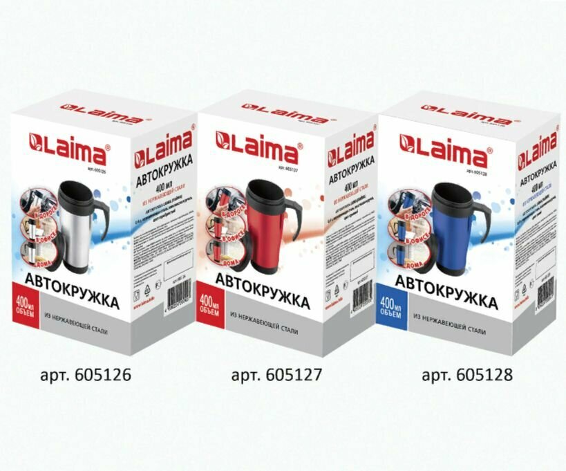 Автокружка Laima, 400 мл, нержавеющая сталь, пластиковая ручка, синяя, 605128