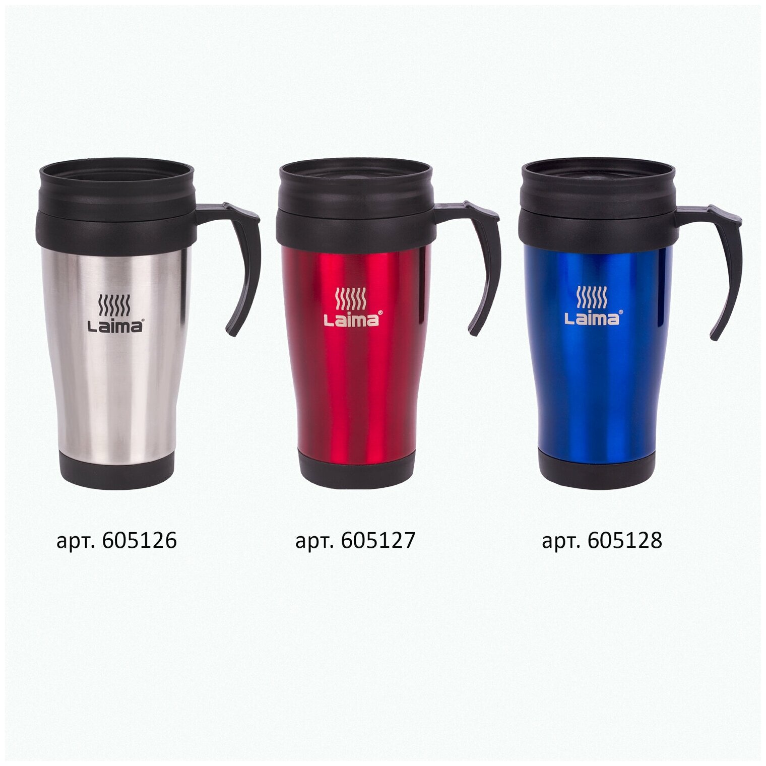 Термокружка лайма LAIMA, 400 мл, нержавеющая сталь, пластиковая ручка, красная 605127